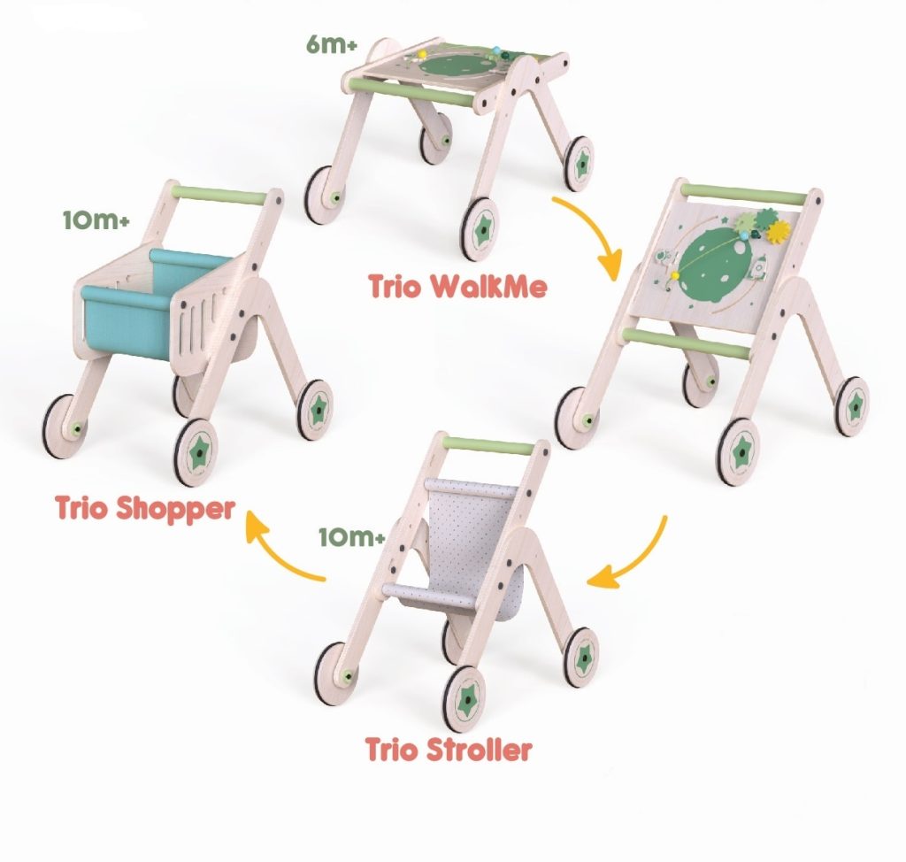 Masinuta ride-on, premergator si carucior de jucarii MamaToyz DriveMe Soft, Ursulet – Jucarie din lemn 3 in 1