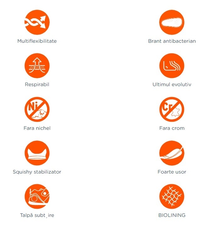– Reglabilitate – Curele reglabile pentru a asigura o potrivire optimă, confortabilă si o incaltare usoara
