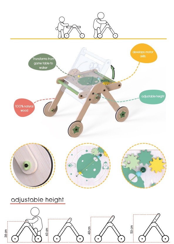 Antepremergatororul din lemn transformabil 4 in 1 de la MamaToyz este un adevarat sprijin si ajutor pentru copilul tau in efectuarea primilor sai pasi!