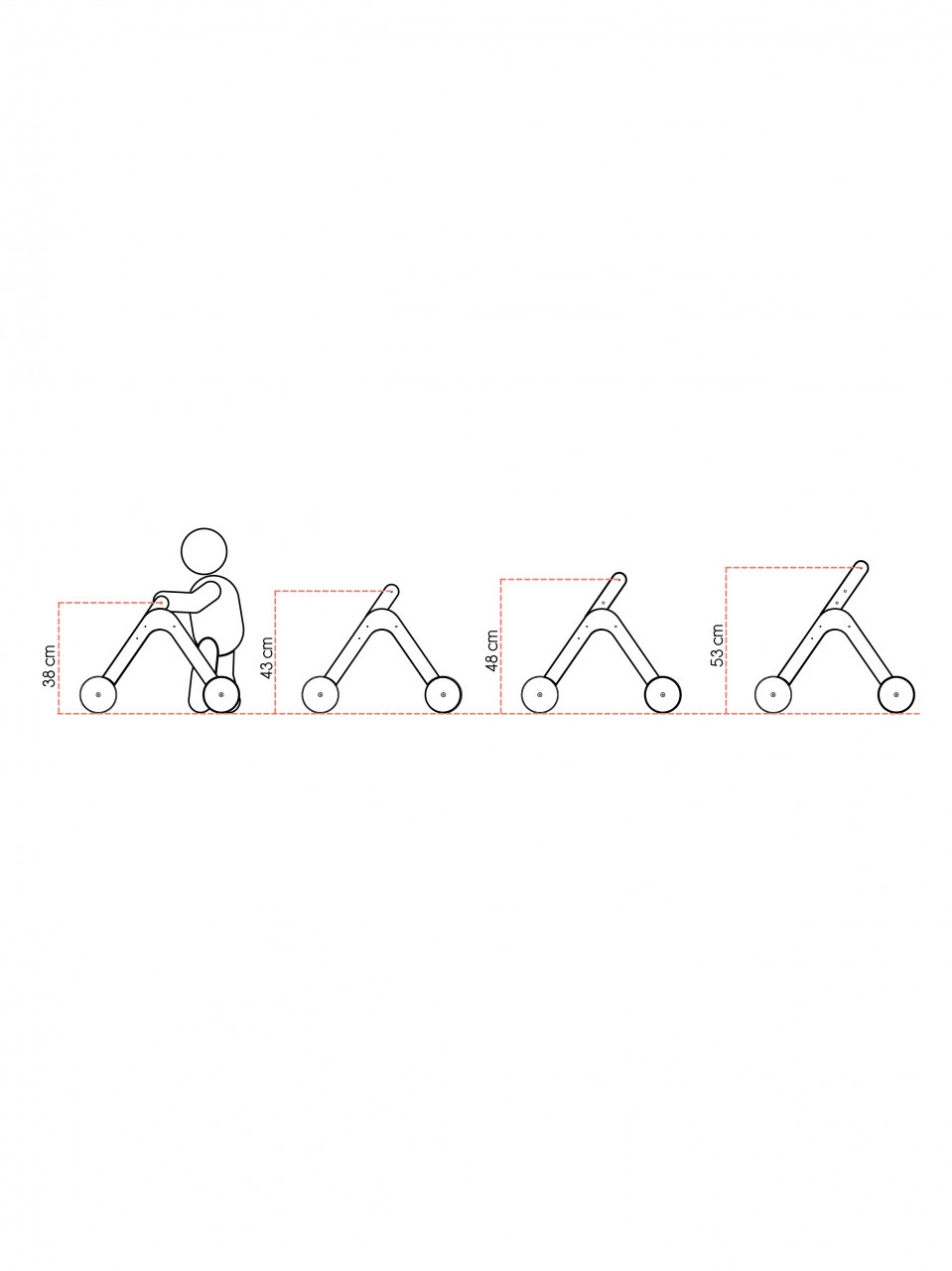 Inaltime reglabila: inaltimea poate fi reglata in functie de nevoile bebelusului, datorita manerului care se poate extinde de la 38cm la 54cm, avand 4 variante de inaltine.