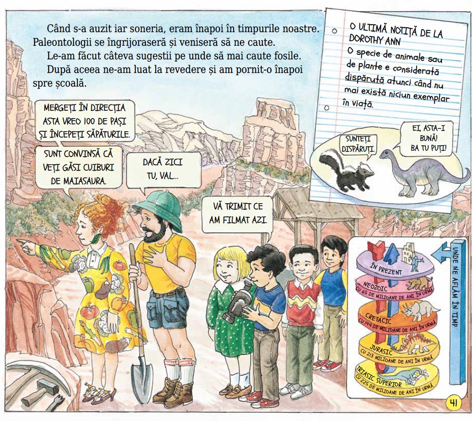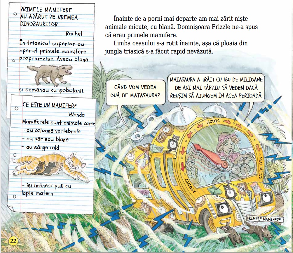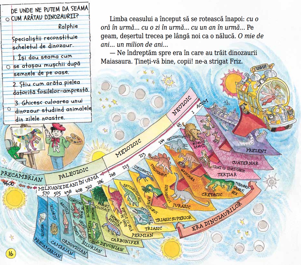 Este Ziua Porților Deschise la școală, iar copiii și-au transformat clasa într-o adevărată Lume a Dinozaurilor. Surprinzătoarea domnișoară Frizzle anunță că sunt invitați să participe la excavarea unor fosile de dinozauri și întreaga clasă se îmbarcă în autobuzul școlar cel vechi și rablagit. Ajunși la situl unde se făceau săpăturile, copiii află că paleontologii descoperiseră oasele fosilizate ale unui dinozaur pe nume Maiasaura, dar păreau dezamăgiți că nu găsiseră ouă de dinozaur fosilizate. Cu o licărire în ochi, domnișoara Frizzle întreabă „Ce ziceți, copii, mergem să căutăm niște cuiburi de Maiasaura? ” Și astfel autobuzul magic se transformă într-o mașină a timpului care călătorește cu milioane de ani în urmă, oprindu-se pe vremea primilor dinozauri, la sfârșitul perioadei triasice, apoi în jurasicul superior, până când, în cele din urmă, ajunge în perioada cretacică unde descoperă și locul unde îți făceau cuiburi Maiasaura. În fiecare perioadă vizitată, copiii fac cunoștință cu diverse specii de dinozauri, habitatul lor, modul de a se hrăni și caracteristicile fizice ale acestora. O aventură plină de suspans, care abundă de cunoștințe noi, prezentate într-un mod creativ și exuberant.