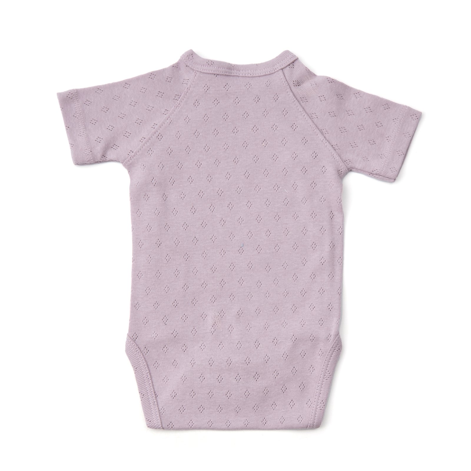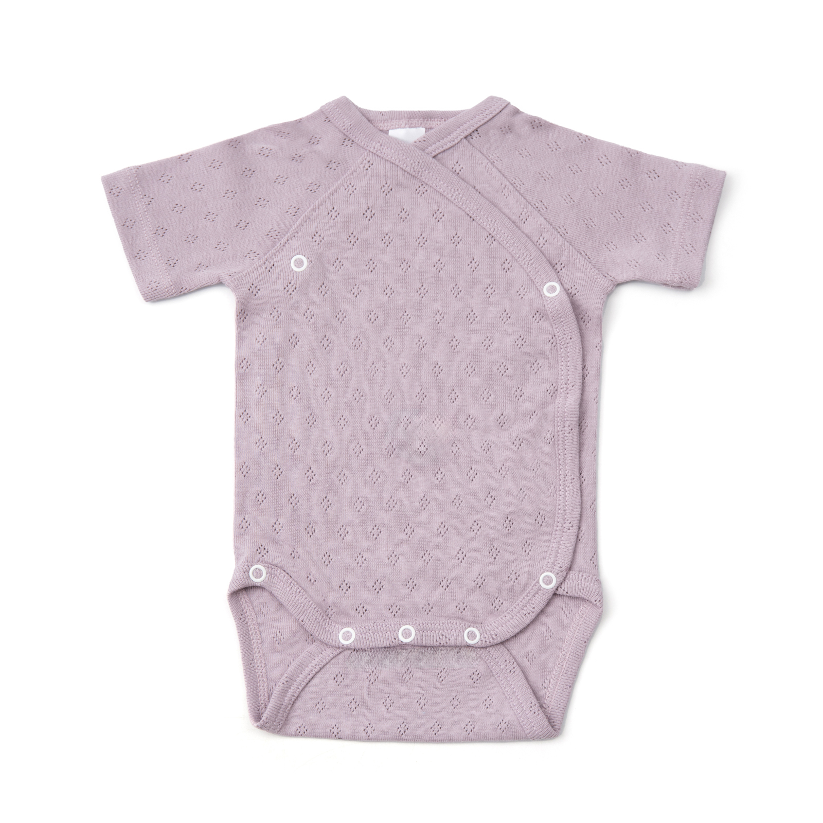 Body-ul nostru pentru nou-nascuti este realizat din bumbac fin cu model pointelle, moale, respirabil si ideal pentru pielea delicata a bebelusilor. Designul cu guler incrucisat si deschidere laterala completa permite imbracarea usoara, fara sa fie tras peste capul copilului. Inchiderea cu capse metalice sigure pe lateral si intre picioare faciliteaza schimbarea rapida si asigura stabilitatea produsului. Bumbacul pointelle ofera un aspect delicat si elegant, asigurand in acelasi timp confort termic, potrivit pentru toate sezoanele .
