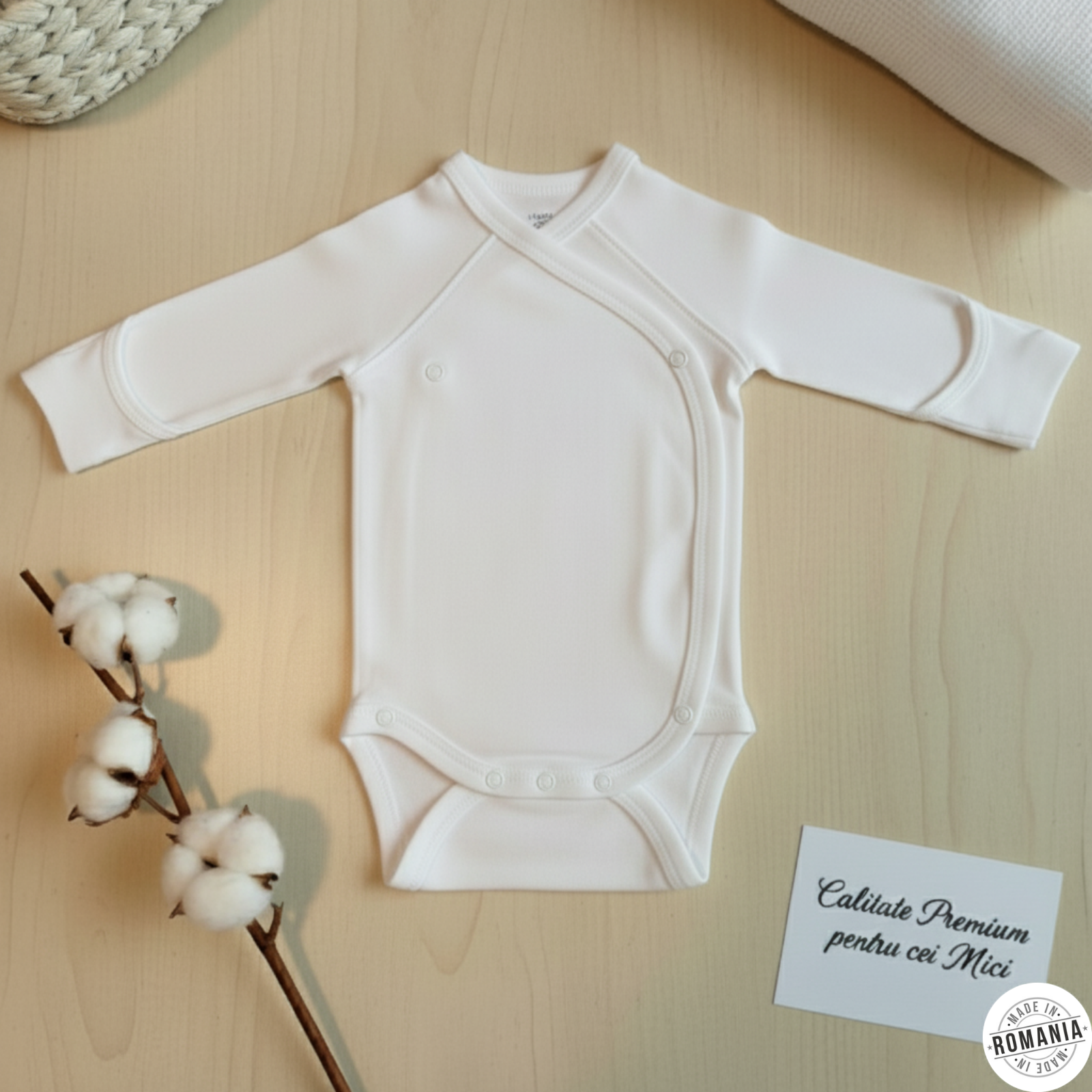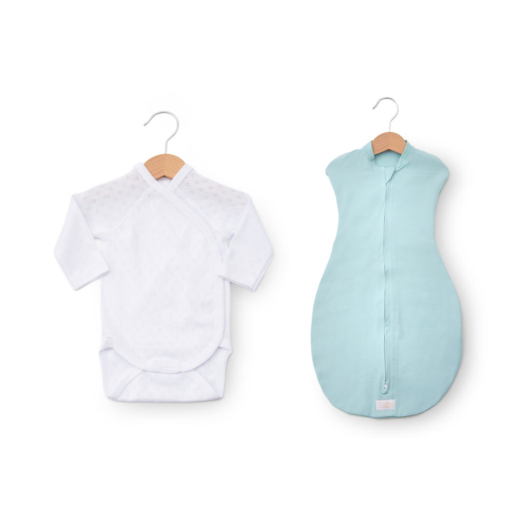 Calitate premium OEKO-TEX 100 Clasa 1. Cu 7 capse pentru o imbracare usoara. Perfect pentru pielea sensibila a nou-nascutului. Mansetele se pot transforma usor in manusi, prevenind zgarierea accidentala a fetei in timpul somnului sau jocului.
