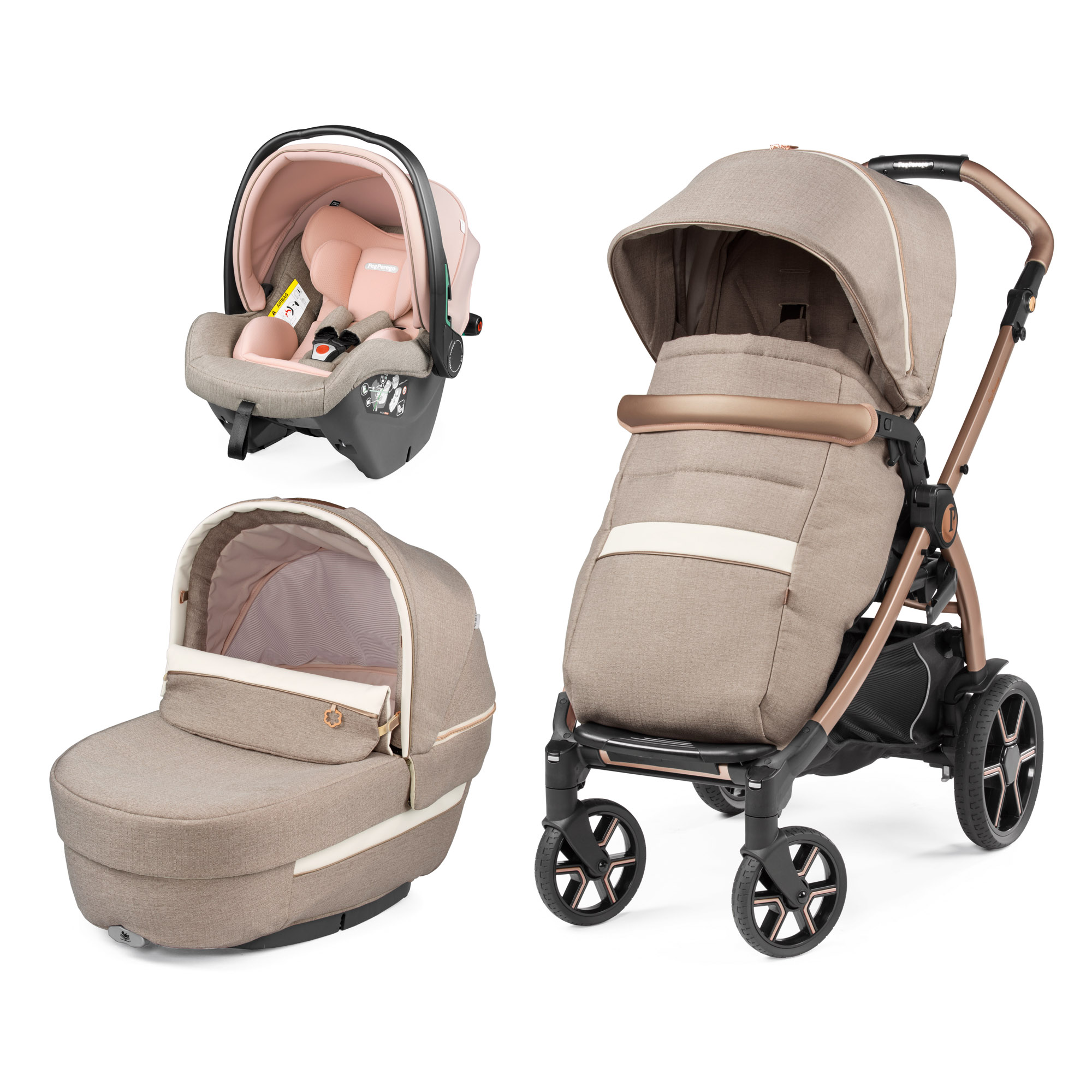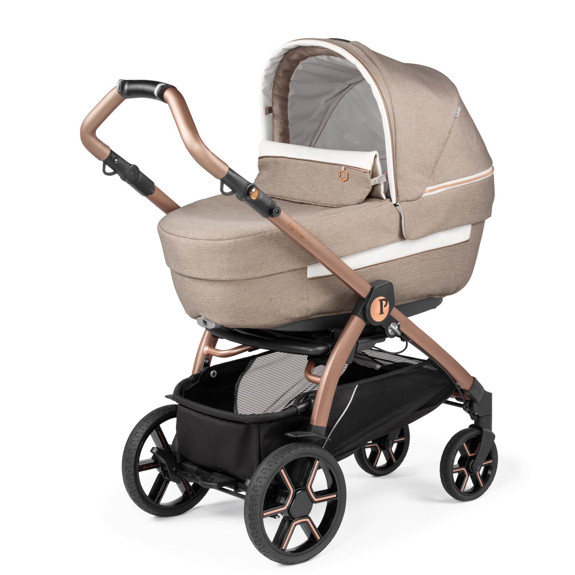 Exprima-ti stilul. Misca-te liber. Alege siguranta. Alege Peg Perego.Landou, carucior si scaun auto. Confort si siguranta in stil italian. Usor, practic, versatil. Recomandat de la nastere.Eleganta sta in detalii. Modularul Book se evidentiaza prin stilul unic al landoului Culla Elite, cu o croiala fina, cu insertiile sale moderne si designul italian, toate contribuind la confortul copilului.Caruciorul dotat cu un scaun (hamac) reversibil, este pregatit pentru plimbari relaxante. Directia sa agila si dinamica, il face usor de folosit ;in orase si aglomerari urbane. Echipat cu amortizoare si avand doar 51 cm latime, trece cu usurinta testul liftului. Calatoria in siguranta in masina este garantata de scaunul auto Primo Viaggio SLK.Primo Viaggio SLK este scaunul auto i-Size omologat conform noului standard ECE R129/03. Cu acest scaun, un copil poate calatori mai mult timp in pozitia rear-facing (orientat in sensul invers de mers al masinii), pana cand inaltimea copilului va fi de 87 cm si greutatea de 13 kg (0 – 15 luni). In plus, este potrivit si pentru calatoriile cu avionul.Scaunul Auto Peg Perego Primo Viaggio SLK a fost testat, pentru siguranta, in caz de impact, la testele Stiftung Warentest, ADAC, ÖAMTC si TCS, realizate in anul 2022, obtinand calificativul „Good” (Bun), cu nota 1.9, la testele cu Baza i-Size – 0, +1 (baza se achizitioneaza separat). La testele ADAC cu prinderea scaunului auto in masina, cu centura de siguranta a masinii a obtinut calificativul „Good” (Bun).Gustul eclectic si designul contemporan o recomanda drept cea mai moderna colectie. Cu detalii conform tenditelor la moda, tesatura Graphic Gold se potriveste cu garniturile aurii ale sasiului.Landoul Culla ElitePrimul patut al copilului, cu ajutorul caruia il puteti legana si plimba la fel de confortabil si sigur ca in bratele voastre. Materialele si designul landoului Culla Elite asigura o buna ventilare si o pozitie ergonomica foarte buna, pentru confortul copilului vostru. Are incorporata o saltea pentru un plus de confort. Landoul Culla Elite este omologat pentru transportul copilului in masina (cu un kit auto care se achizitioneaza separat)Capotina cu panorama – Bucurati-va de plimbari confortabile in orice sezon datorita capotinei cu tesatura UPF 50+, care va proteja bebelusul impotriva soarelui. ;Fermoarul ascunde o insertie din plasa care permite o ventilare mai buna.Husa pentru picioare adaptabila – Capotina si husa pentru picioare adaptabila, creeaza conditiile perfecte pentru a va proteja bebelusul si a-l scoate la plimbare indiferent de vremea de afara. Prevazuta cu insertie pentru a suspenda jucaria preferata a copilului.Confort si relaxare – Sistemul unic ”Comfort System” regleaza simultan spatarul si suportul pentru picioare, mentinand pozitia ergonomica optima pentru confortul si relaxarea bebelusului, cand este treaz sau cand doarme. Prin ajustarea sistemului „4 Seasons System”, veti avea intotdeauna climatul ideal in interiorul landoului: cald iarna si racoare vara.Maner pentru transport incorporat – Manerul elegant, incorporat, din piele ecologica este un brevet Peg Perego. Puteti cobora capotina cu o singura mana.Confort si relaxare si in interiorul casei! – Landoul Culla Elite este plin de surprize! Poate fi folosit ca un leagan, balansoar datorita bazei rotunjite, ca un patut, datorita picioruselor care pot fi extinse din baza landoului sau ca un cos atunci cand este fixat pe suportul pentru landou (accesoriu care se achizitioneaza separat).Caruciorul BookEleganta sta in detaliile caruciorului Book, aprobat pentru utilizare de la nastere: un scaun (hamac) reversibil, o husa pentru picioare confortabila. Exceptional de agil ca directie, masurand ;doar 51 cm latime, este foarte versatil si usor de utilizat!Confort de la nastere – Scaunul reversibil al caruciorului Book ofera plimbari confortabile de la nastere pana cand bebelusul ajunge la 22 kg ;greutate. Spatarul si capotina se regleaza simultan.Roti de calitate superioara – Rotile din cauciuc siliconat, cu amortizoare pe rotile din spate si rulmenti cu bile asigura o directie agila pe toate tipurile de teren. Butonul pozitionat in partea lapterala a sasiului, va permite sa schimbati pozitia rotilor din fata, de la blocat, la pivotant si invers, fara a va apreca.Maner ergonomic si reglabil – Agilitatea directiei este garantata, chiar si cu o singura mana. Manerul este prevazut cu piele ecologica ;asigurand un confort maxim.Pliere compacta – Caruciorul Book se deschide si se inchide cu o singura mana, cu scaunul fixat in ambele pozitii. Se sustine singur in pozitie verticala si ocupa putin spatiu.Capotina mare, protectie UPF 50+ – ;Capotina confortabila si extensibila cu vizor, protejeaza somnul bebelusului de soare si vant.Cos pentru accesorii incapator – Fie ca va plimbati prin parc sau faceti cumparaturi, cosul mare cu acces facil va ajuta sa mentineti la indemana tot ce aveti nevoie. Finisajele reflectorizante contribuie la siguranta plimbarilor pe timp de noapte.Scaun (hamac) confortabil – Confortul si functionalitatea sunt garantate de un scaun spatios, o centura cu prindere in 5 puncte si o bara din piele ecologica care se deschide si se inchide cu usurinta.Primo Viaggio SLKPrimo Viaggio SLK este scaunul auto i-Size omologat conform noului standard ECE R129/03. Cu acest scaun, un copil poate calatori mai mult timp in pozitia rear-facing (orientat in sensul invers de mers al masinii), pana cand inaltimea copilului va fi de 87 cm si greutatea de 13 kg (0 – 15 luni). In plus, este potrivit si pentru calatoriile cu avionul.Scaun auto testat ADACScaunul Auto Peg Perego Primo Viaggio SLK a fost testat, pentru siguranta, in caz de impact, la testele Stiftung Warentest, ADAC, ÖAMTC si TCS, realizate in anul 2022, obtinand calificativul „Good” (Bun), cu nota 1.9, la testele cu Baza i-Size – 0, +1 (baza se achizitioneaza separat). La testele ADAC cu prinderea scaunului auto in masina, cu cen