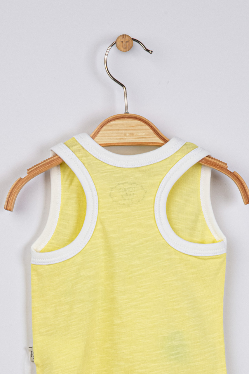 – maiou din bumbac 100%, fluid, de vara, cu imprimeu si aplicatie din material.