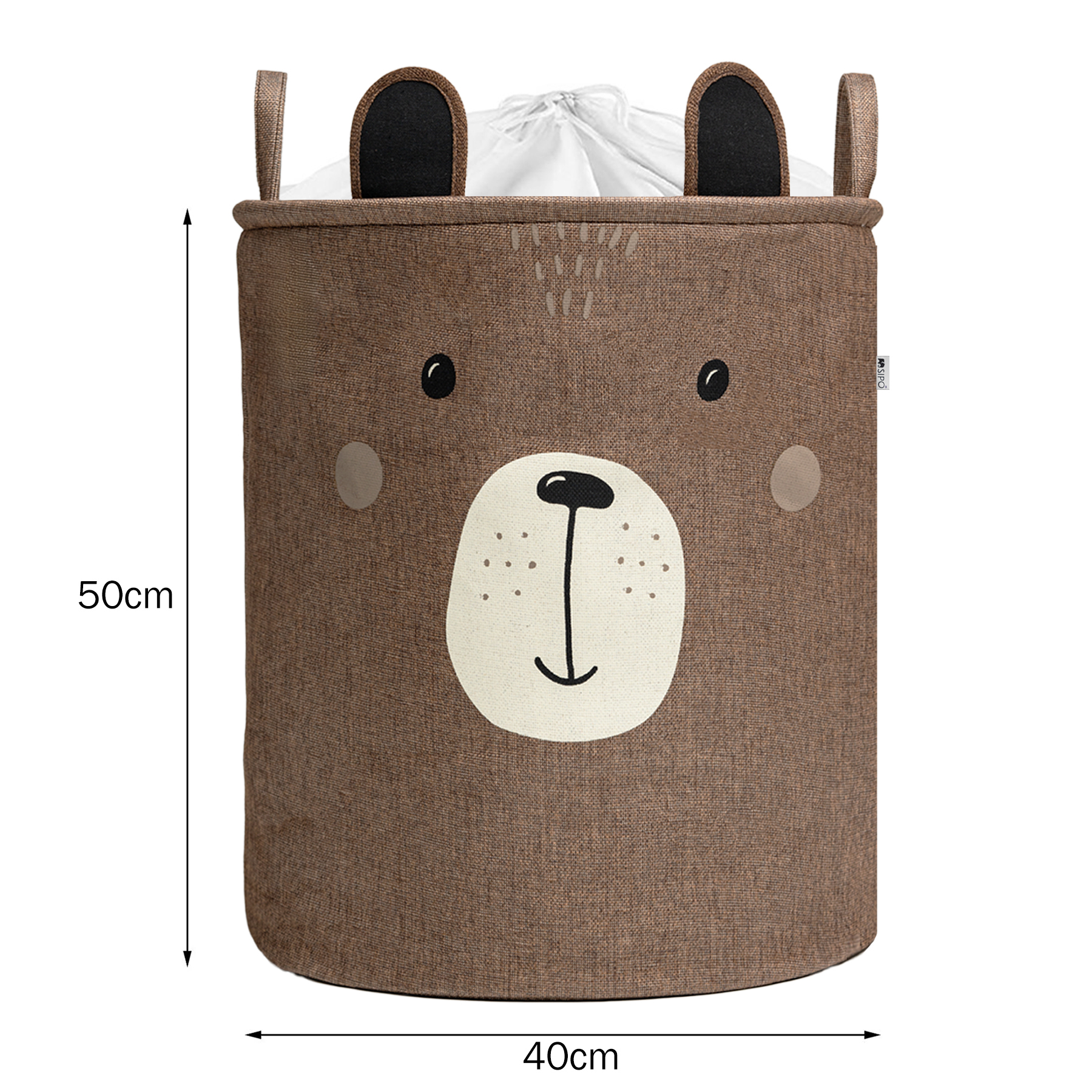 Cos Pliabil Pentru Depozitare Jucarii cu Snur pentru Inchidere, PREMIUM XL, 63 l, Impermeabil, SIPO, Brown Bear