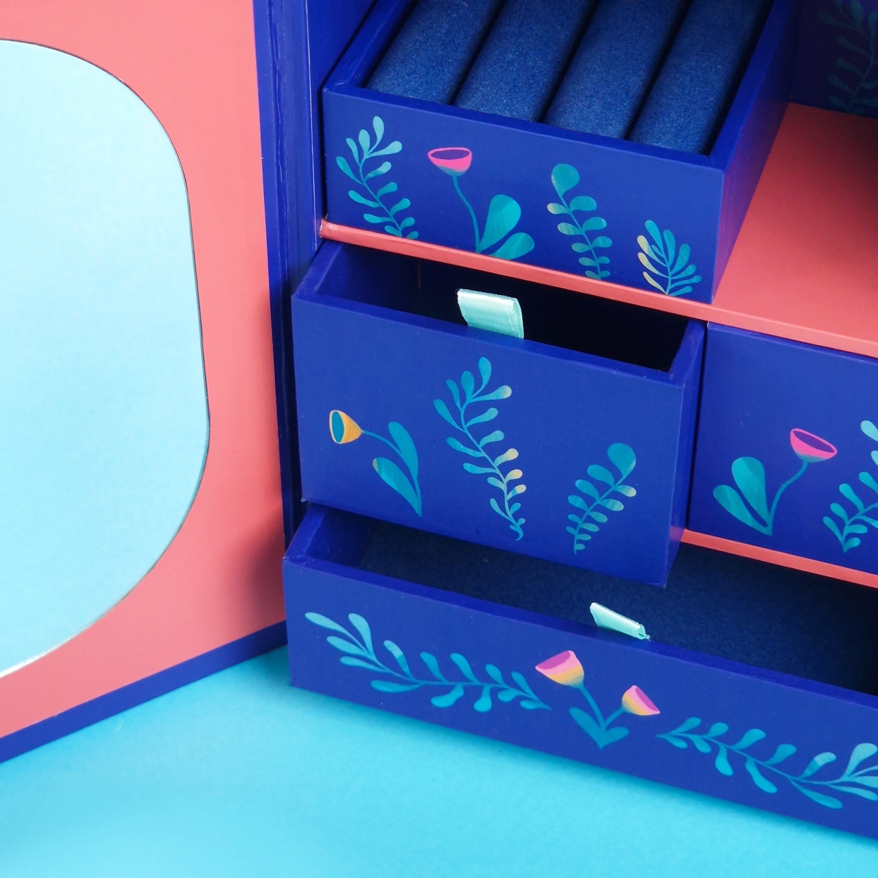 Cutie muzicala pentru bijuterii Fetita si dragonul Cutie de bijuterii sub forma unei cărți fantastice, decorată cu motive fantastice. Această bijuterie muzicală dispune de sertărașe multiple, suport de inele și o oglindă, pentru momente de răsfăț și joc de rol. Cu un design compact, dar încăpător, și detalii bine gândite precum sertare diferite pentru cercei, brățări și coliere, această cutie nu este doar funcțională, ci mai ales decorativă.Cadou pentru fete cochete care îndrăgesc poveștile, magia și bijuteriile. Melodie: Puff the Magic DragonDimensiune cutie muzicală: 20.5 × 15.5 × 8 cmVârsta recomandată: +4 ani. Confecționată din MDF, carton ilustrat, plastic (oglindă), componente metalice. AVERTISMENT: Articol decorativ. Nu este jucărie. A nu se lăsa la îndemâna copiilor sub 3 ani.Producător: Svoora
