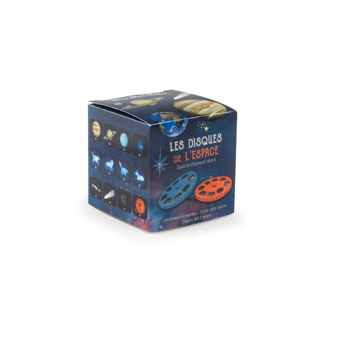 Discuri cu povesti Exploratorul Conține 3 discuri cu ”diapozitive”, fiecare disc conține o secvență de 8 imagini colorate care, atunci când sunt proiectate pe un perete sau tavan, spun o poveste vizuală despre constelații, planete, imagini din spațiu.  Practice și ușor de utilizat, pasionații de lanterne cu povești vor putea colecționa discuri din toate gamele! Compatibile cu orice model de proiector Moulin Roty. Dimensiuni: 7 x 7 x 7 cm Vârsta recomandată: + 4 ani.Confecţionate din plastic ABS, conform reglementarilor EN71&ASTM.AVERTISMENT! Contraindicat copiilor sub 3 ani, conţine piese mici, pericol de înghițire. A se folosi sub directa supraveghere a unei persoane adulte. Citiţi cu atenţie eticheta înainte de a înmâna jucăria copilului.Producător: Moulin Roty, Franța.