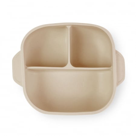 Iti recomandam o farfurie compartimentata din silicon moale, cu ventuza anti-alunecare.