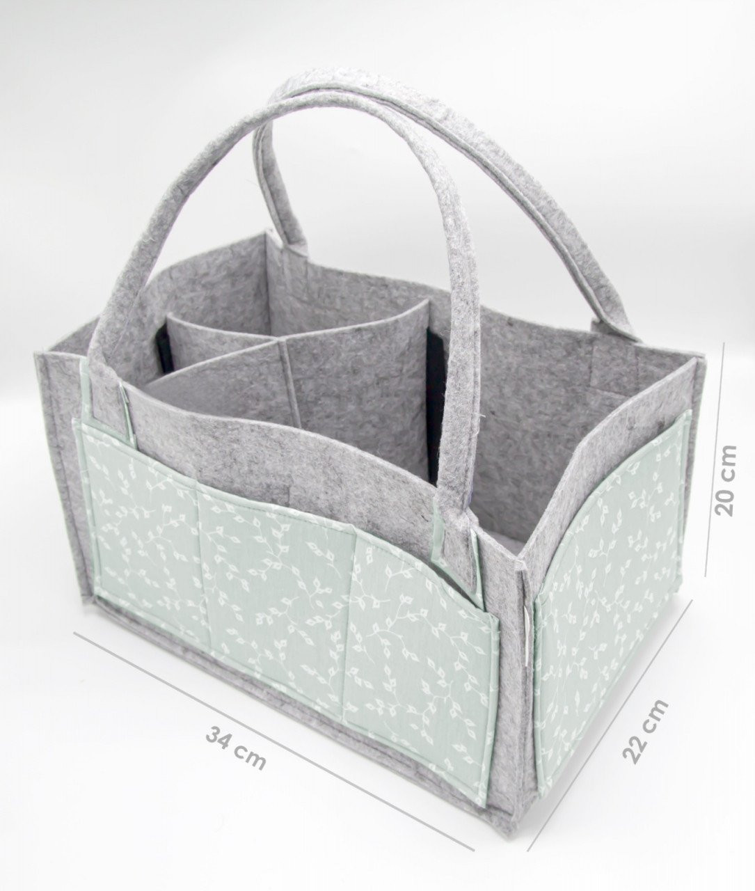 Geanta organizator pentru scutece si accesorii copii/bebelusi confectionata din fetru. Este un obiect foarte util pentru orice parinte care foloseste scutecele, mai ales in deplasare. De altfel, acest produs poate fi folosit nu numai ca organizator pentru scutece, ci si ca organizator auto pentru jucarii si gustari mici. Va fi perfect si in baie, in camera unui copil ca organizator pentru jucarii, carti sau lenjerie intima.