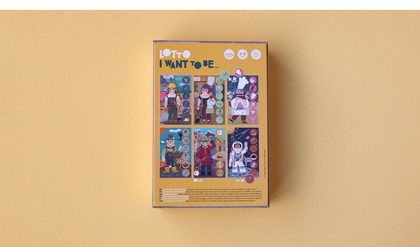 Joc de asociere Loto meserii Joc Loto pentru copii și adulți; câștigătorul este jucătorul care adună primul toate imaginile ocupației aleasă de el.Ilustrație Africa FanloAmbalat în cutie robustă din carton.Conține 6 table de joc ocupație (14 x 22 cm) + 36 de piese rotunde cu imagini de ocupație.Dimensiune cutie 27,5x15x4,5cm.Vârsta recomandată: +3 ani.Confecționat din hârtie FSC și carton reciclat conform reglementărilor EN71&ASTM.AVERTISMENT: Contraindicat copiilor sub 3 ani. Se recomandă supravegherea copilului de către un adult în timpul jocului. Producător: Londji, Spania.