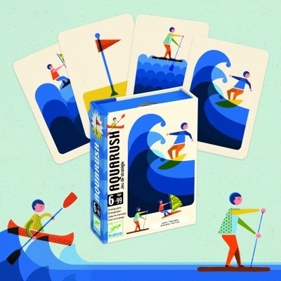 Joc de strategie rapidă pentru copii și familie Este un joc de cărți strategic și antrenant pentru întreaga familie, cu o tematică originală inspirată de sporturile acvatice. Scopul este să „prinzi valul” la momentul potrivit, adică să colectezi cărțile pentru a acumula puncte – dar atenție! Dacă aștepți prea mult, alt jucător îți poate fura teancul! Fiecare rundă este rapidă, competitivă și plină de suspans. Jocul îmbină perfect luarea deciziilor și asumarea riscurilor. Pentru joacă în familie sau cu prietenii. Perfect pentru petreceri, seri în familie sau tabere – distracția e garantată! Reguli simple, ușor de înțeles. Cutie compactă, ușor de transportat. Jocul conţine 54 cărți + set de reguli de joc. Vârsta recomandată: 6 – 99 ani. Fabricat din carton certificat FSC®. Conform reglementărilor EN71&ASTM. AVERTISMENT: Contraindicat copiilor sub 3 ani. Se recomandă supravegherea copilului de către un adult în timpul jocului. Citiți cu atenție eticheta produsului înainte de a înmâna jocul copilului. Producător: Djeco, Franța Manual Joc de carti Aquarush, Djeco – descarca aici fisierul