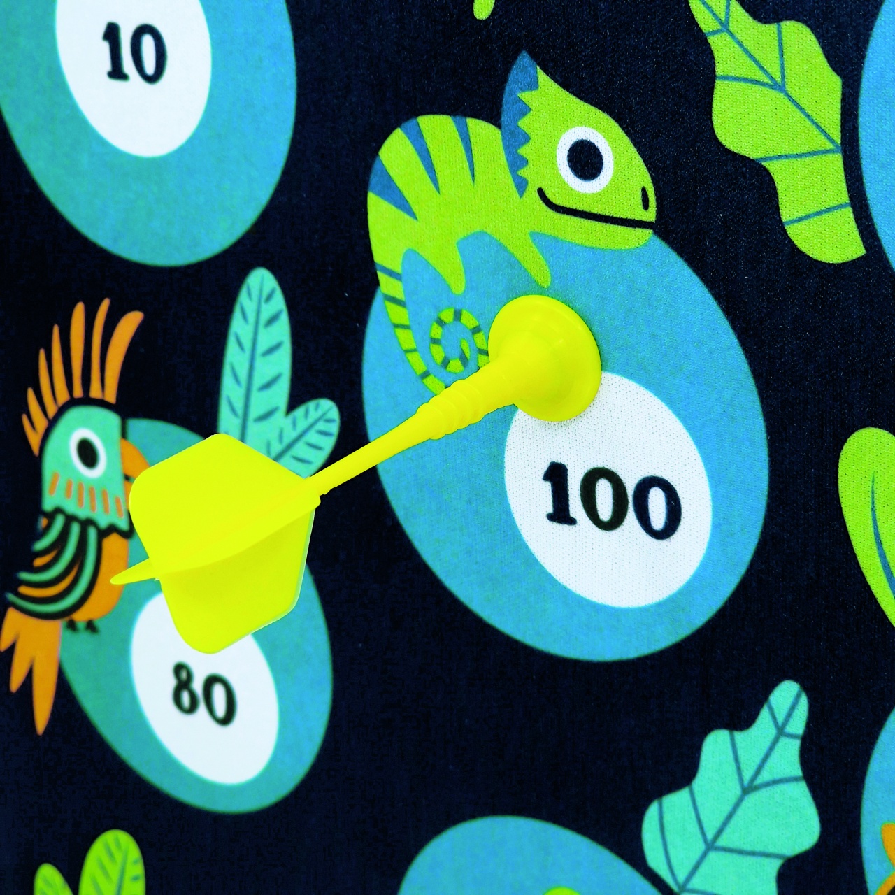 Joc magnetic de darts – Jungle | Țintește distracția în siguranță! Disponibil în 2 variante: Circus și Jungle. Descoperă bucuria jocului clasic de darts în varianta magnetică și prietenoasă pentru copii! Decorat cu animale colorate din junglă, acest joc stimulează precizia, coordonarea și spiritul de competiție într-un mod distractiv și sigur. Ce îl face special: Suprafață magnetică cu design vesel, ilustrat cu tematică junglă Săgeți magnetice, fără vârfuri ascuțite – sigure pentru copii, fără risc de accidente Se agață ușor pe perete și este portabil – pentru joaca indoor sau outdoor Stimulează dezvoltarea motricității fine și a coordonării mână-ochi Numerele de pe tablă oferă un calcul rapid al scorului fiecărui jucător Recomandat pentru: Copii și familii, pentru distracție în siguranță Petreceri, reuniuni de familie și cadouri Antrenarea atenției și a spiritului competitiv sănătos Conținut: 6 săgeți magnetice în două culori, tablă ilustrată cu două fețe Dimensiuni tablă de joc: 44 × 32 cm Vârsta recomandată: 4+ aniProducător: Svoora, Grecia AVERTISMENT: Contraindicat copiilor sub 3 ani. A se utiliza sub directa supraveghere a unui adult.