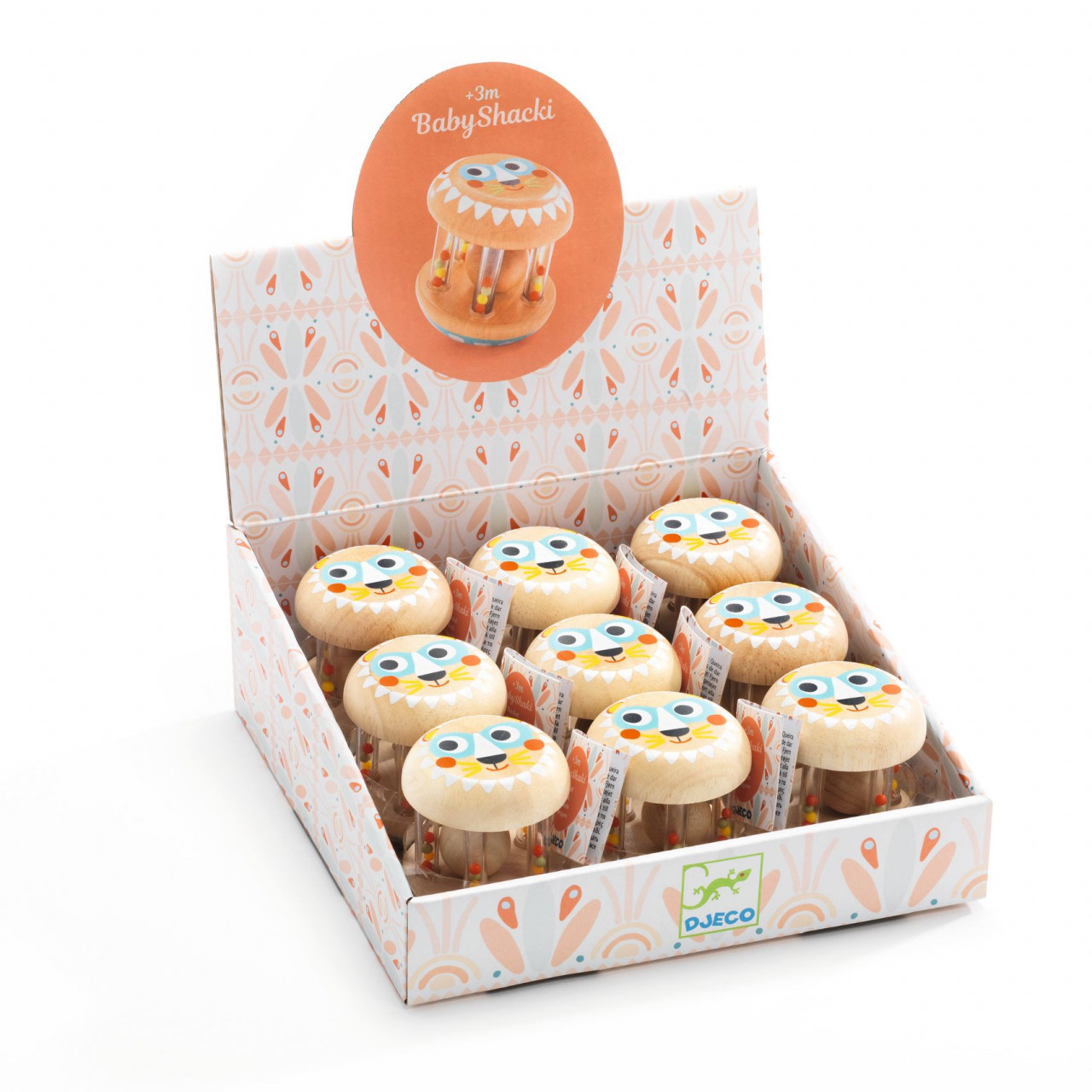 Jucarie bebe Babyshaki Să apuci e distractiv: acestă zornăitoare minunată este perfectă pentru mânuțele copilului. Bile colorate în interior, care se mișcă, şi captează uşor atenţia bebeluşului. Dimensiune produs: 5.5 x 6 x 5.5 cm. Confecționată din lemn si materiale non-toxice, cu vopsele non-toxice, conform reglementărilor EN71&ASTM. Certificare FSC.Vârsta recomandată: +3 luni.AVERTISMENT: Contraindicat copiilor sub 3 luni. A se utiliza sub directa supraveghere a unui adult. A se arunca la primul semn de defecte sau deteriorări. Producător: Djeco, Franța.