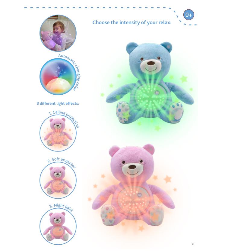 Jucarie cu proiectie Chicco Ursuletul bebelus, roz, 0luni+