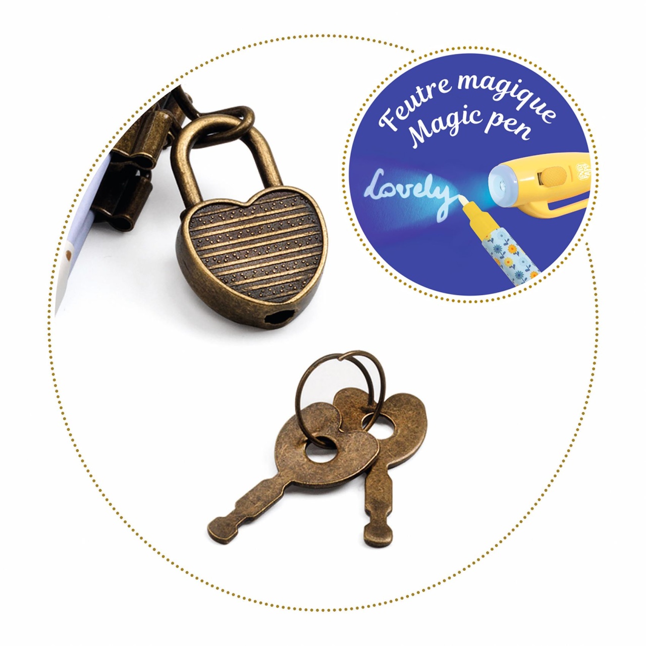 Jurnal secret cu pix magic Iepuras Un mic caiet secret în care să scrii și să desenezi toate secretele tale, însoțit de un stilou cu cerneală invizibilă! Doar treceți lumina UV peste el pentru a vă dezvălui toate secretele! Acest caiet conține 88 de pagini liniate și ilustrate. Jurnalul are încuietoare cu lăcățel în formă de inimă și 2 chei pentru a-ți păstra toate poveștile la adăpost de ochii curioșilor. Dimensiune produs: 15 x 20 x 1.2 cm. Contine: caiet secret, lăcățel + 2 chei, 88 de pagini liniate, stilou magic + baterii LR44 HD (incluse). Vârsta recomandată: +8 ani. Fabricat din hârtie si carton certificare FSC.AVERTISMENT! Articol papetarie. Nu este jucarie. Contraindicat copiilor sub 3 ani. A se folosi sub directa supraveghere a unei persoane adulte. Producător: Djeco, Franța.
