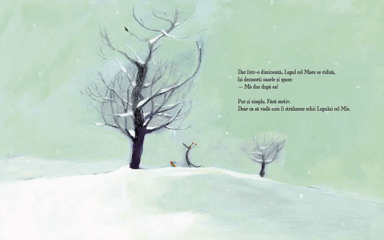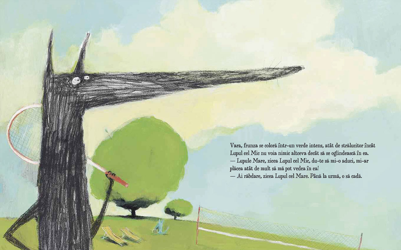 La început, era ușor să te cațări. Erau crengi groase de care să te prinzi. Lupul cel Mic nu spunea nimic. Zâmbea. Dar apoi n-au mai fost decât crengi subțiri, care trosneau de fiecare dată când Lupul cel Mare le apuca.