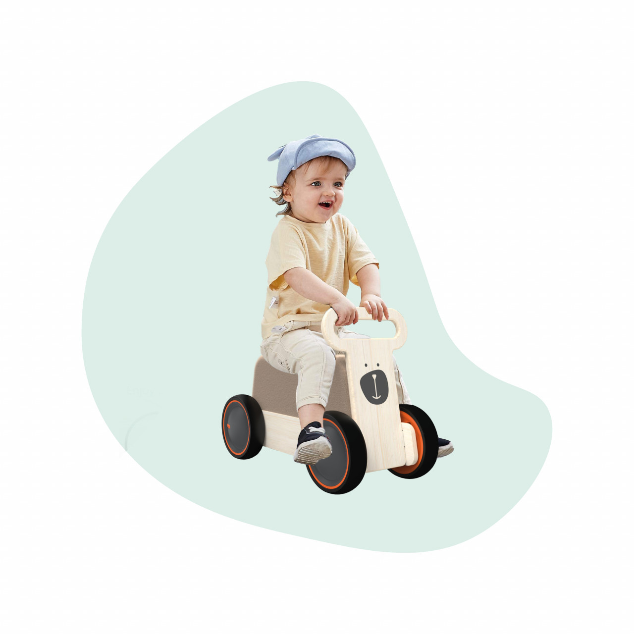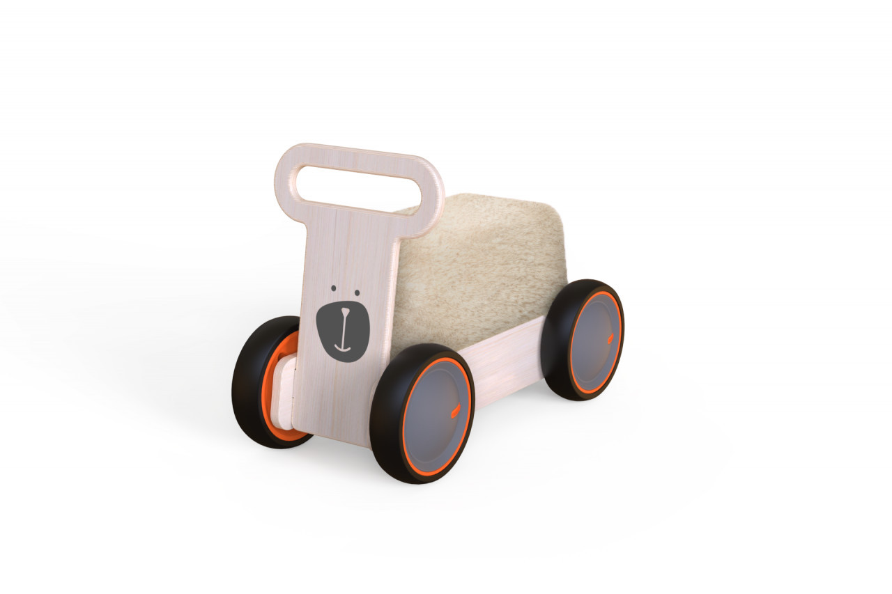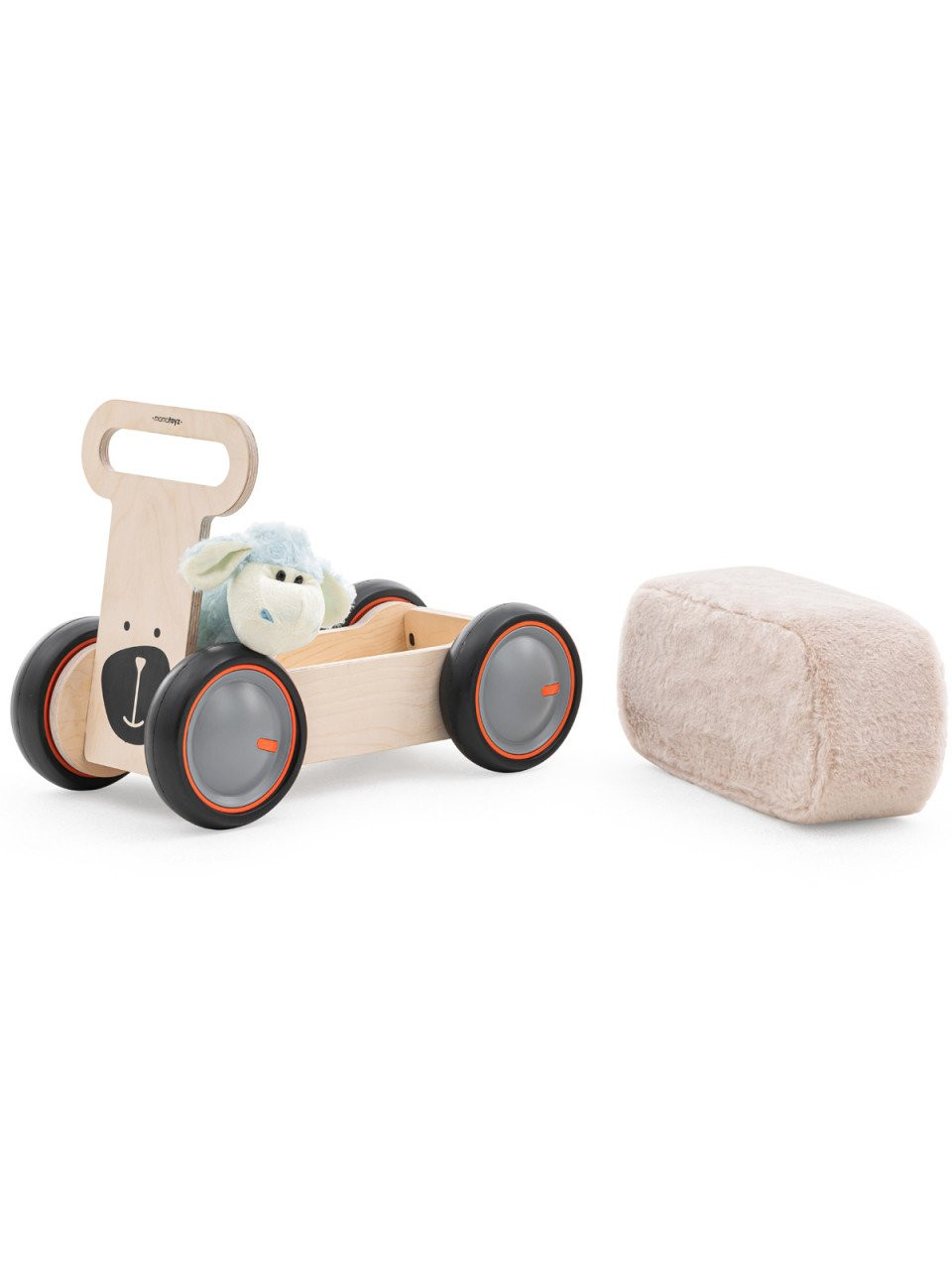 Jucarie din lemn 3 in 1 Ursulet DriveMe Soft: masinuta ride-on, premergator si carucior de jucarii produsa de MamaToyz este o jucarie multifunctionala.