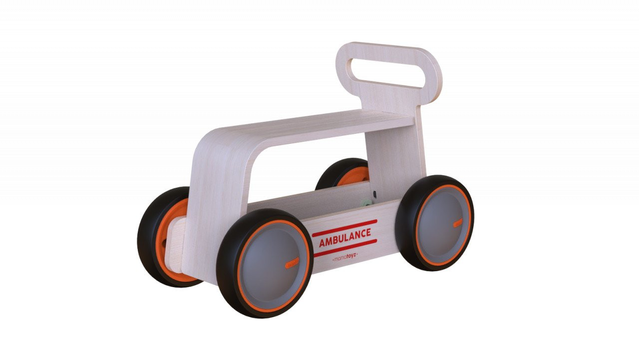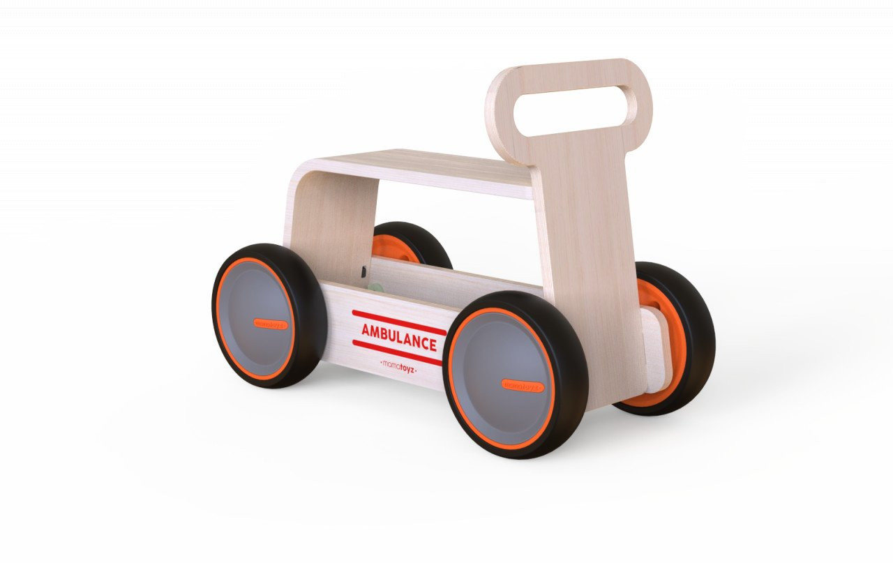 Jucarie din lemn 3 in 1 Ambulanta DriveMe Wood: masinuta ride-on, premergator si carucior de jucarii produsa de MamaToyz este o jucarie multifunctionala.