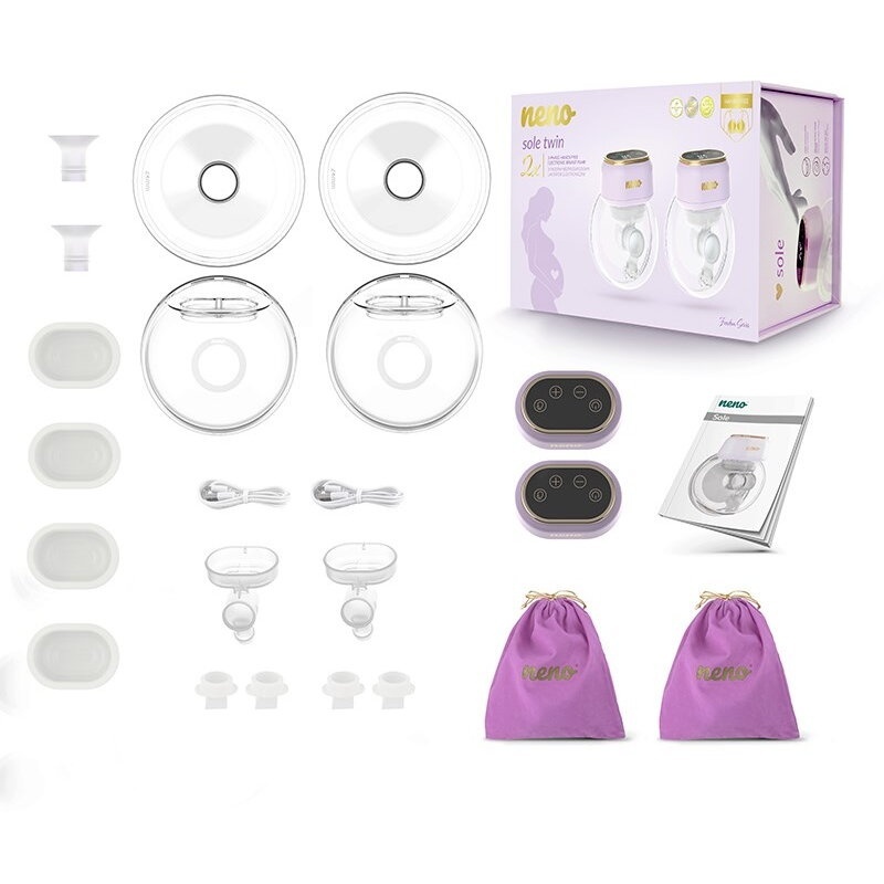 Neno Sole Twin este o pompă de sân dublă inteligentă, creată pentru mamele care doresc să își exprime laptele rapid, confortabil și fără a-și întrerupe activitățile zilnice. Complet hands-free și wireless, pompa se fixează direct în sutienul de alăptare și extrage laptele simultan de la ambii sâni, economisind timp prețios.