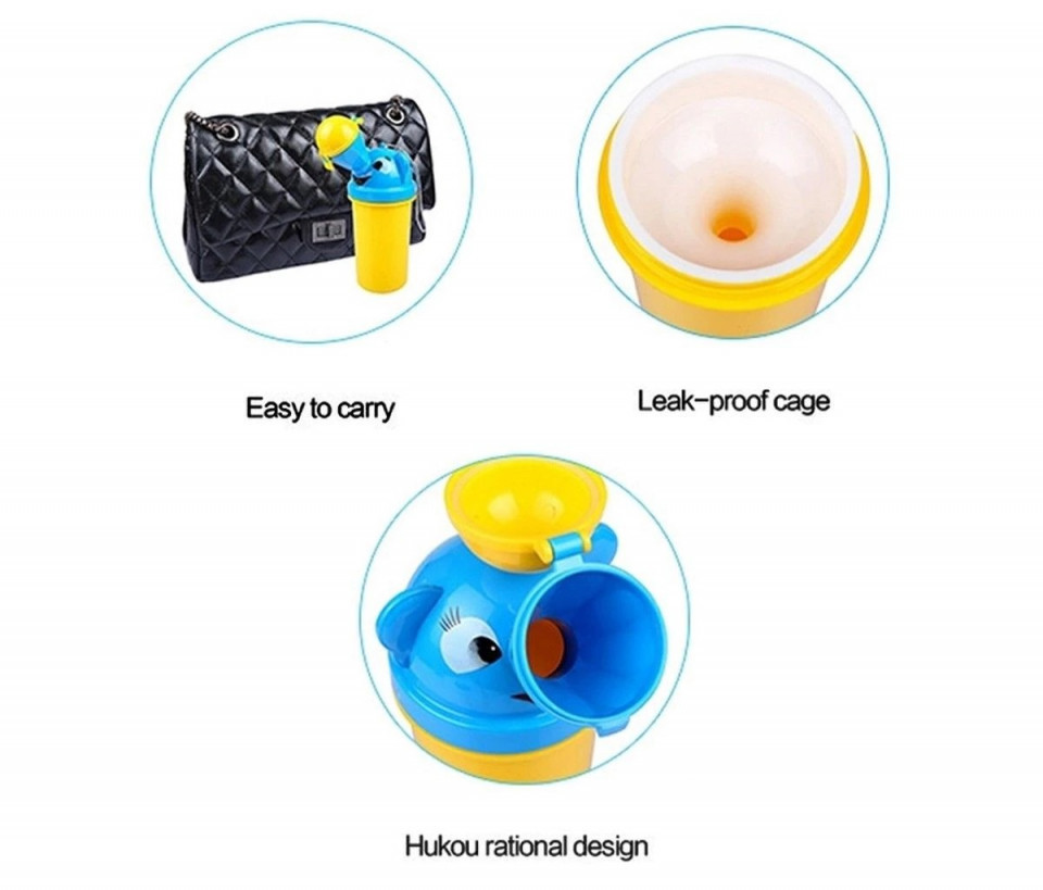 * Daca sunteti in etapa de trecere de la scutece la chilotei, olita portabila este solutia ideala atunci cand copilul vrea sa faca pipi afara. Designul prietenos, de jucarie, este usor acceptat de copii.