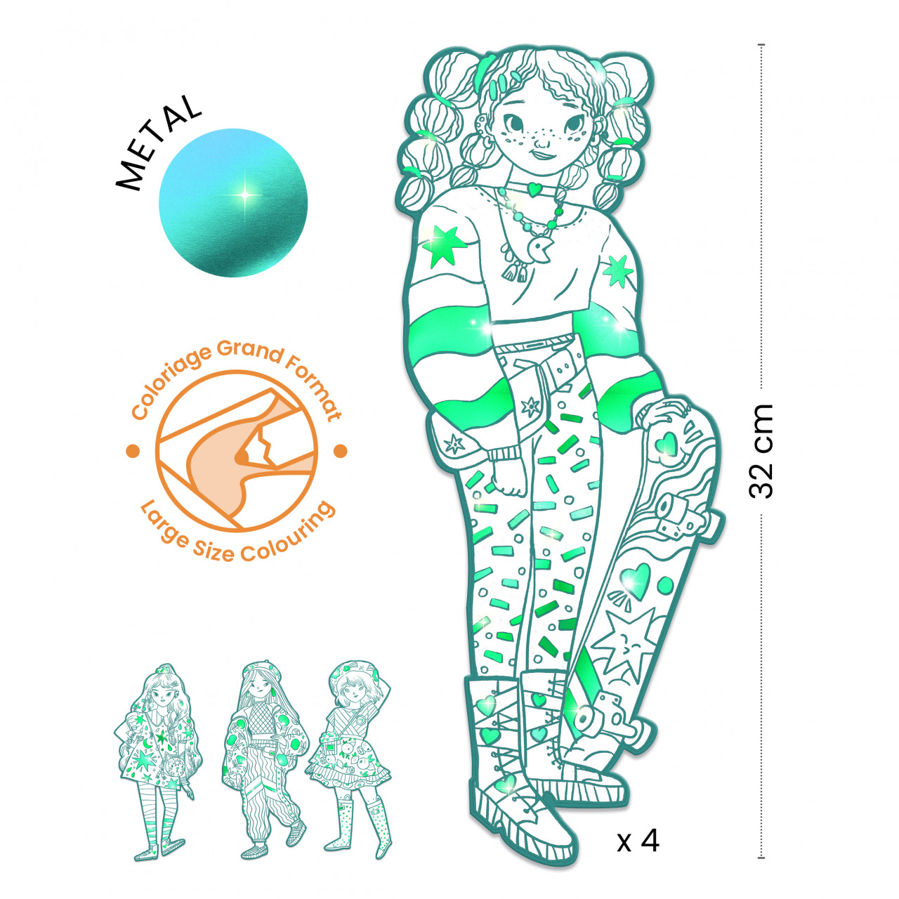 Parada modei de colorat, Angel & prietenele O paradă a modei cu ținute pe care le poți colora după cum îți place! Patru contururi mari (32 cm înălțime) oferă ținute acoperite cu modele și împodobite cu zone strălucitoare pentru a face modelele și mai atrăgătoare!Carton gros pentru a vă păstra creațiile pentru o perioadă lungă de timp.Conținut: 4 contururi de carton de colorat (32 x 18 cm), împodobite cu zone metalice. Vârsta recomandată: +6 ani.Hârtia și cartonul folosite în acest set sunt certificate FSC®.AVERTISMENT: Contraindicat copiilor sub 3 ani. Conține părți mici. Se recomandă supravegherea copilului de către un adult în timpul jocului.Producător: Djeco, Franța