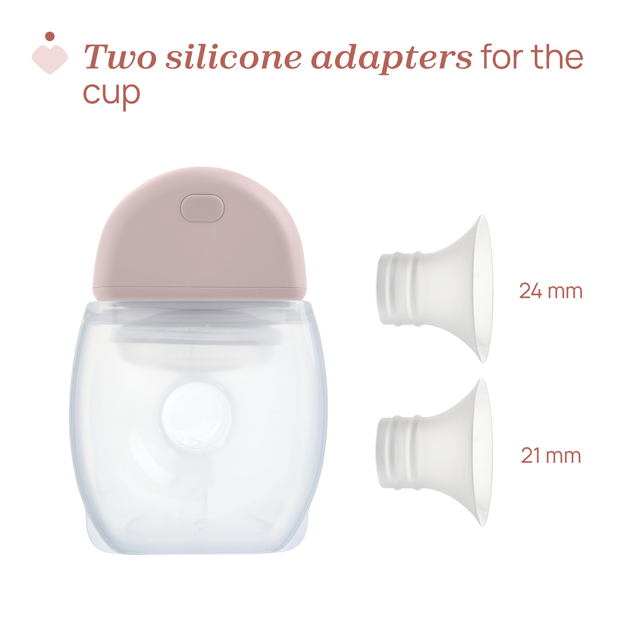 Cupa este conceputa sa se adapteze diferitelor tipuri de fizionomie, fiind echipata cu doua reductoare din silicon de 21 mm si 24 mm. Recipientul de colectare are o capacitate de 150 ml, suficient pentru o sesiune de pompare. Pompa este reincarcabila prin cablu USB-C, ceea ce o face si mai usor de utilizat oriunde te-ai afla.