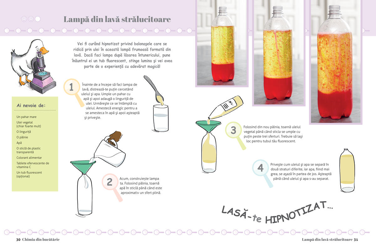Aceasta carte minunata te va ajuta sa intelegi cateva secrete ale stiintei. In primul capitol, Chimia din bucatarie, vei invata cum sa creezi slime lipicios si cum sa faci ca lichidele sa isi schimbe culoarea. Al doilea capitol, Fizica fantastica, te va face vedeta orelor de stiinta. Vei invinge legile gravitatiei si vei stapani circuitele electrice in timp ce inveti cum sa faci rachete-balon si chiar comutatoare. In capitolul trei, Biologia din gradina, te vei aventura prin parcuri in cautare de plante interesante, gandacei ciudati si vei face experimente biologice bizare.