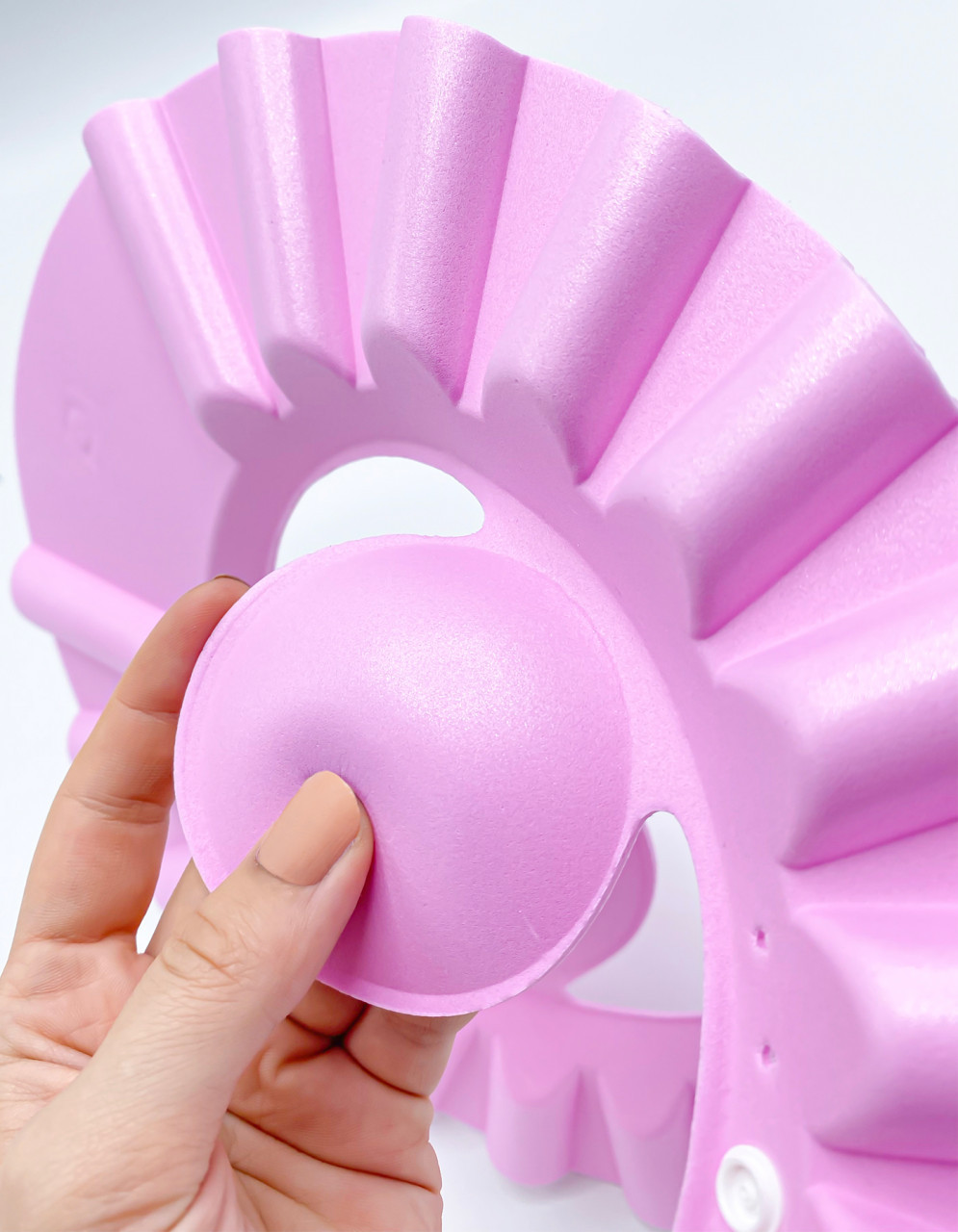 Cu ajutorul protectiei – bebelusului nu-i va ajunge samponul in ochi, iar baita va deveni o placere! Datorita acestui bor special, ochisorii , urechile si fata copilasului sunt protejate de apa si sapun in timpul spalarii parului.