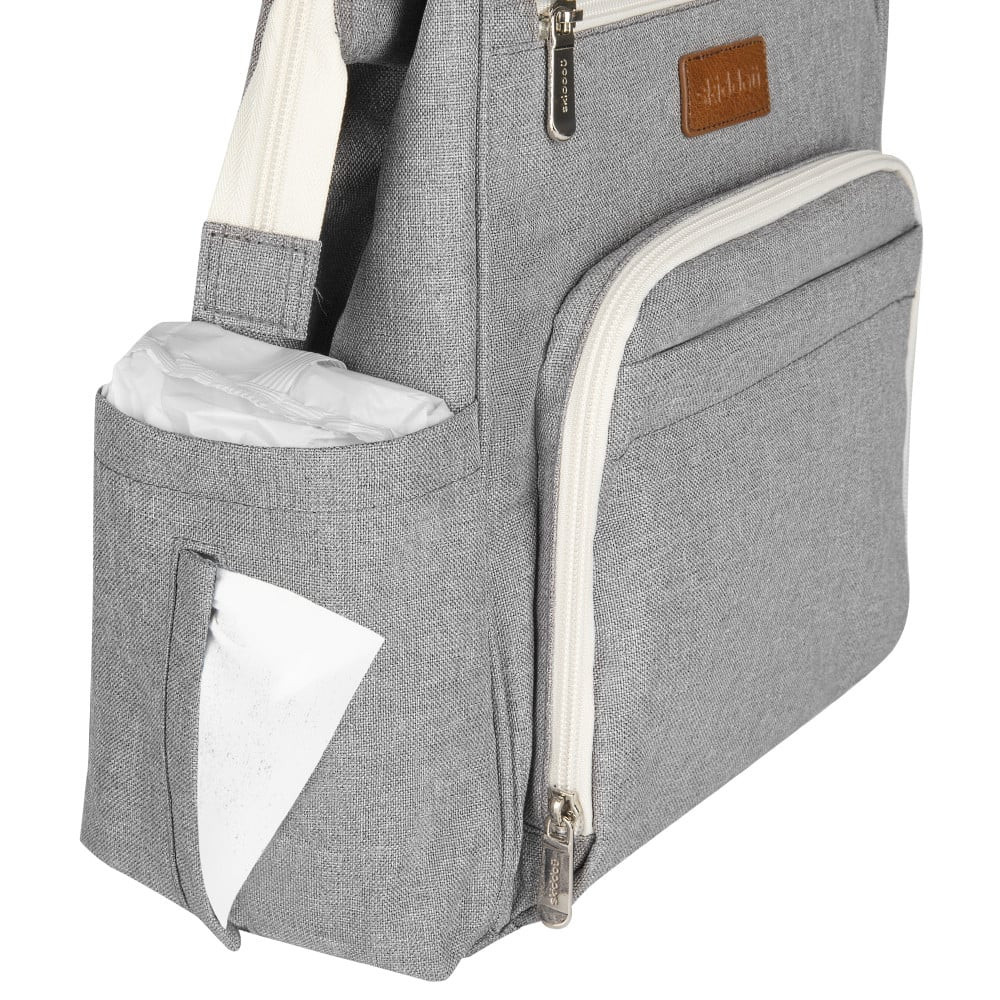– Cu multe compartimente: Compartimentul principal si buzunarul exterior sunt inchise cu fermoar. In interior sunt 2 buzunare pentru telefon sau documente importante. Pe ambele parti exista 2 buzunare care va vor permite sa stocati sticle pe care trebuie sa le aveti la indemana sau o umbrela. In interiorul buzunarului din fata a rucsacului exista 2 buzunare termoizolante pentru biberoane – depozitarea lor va fi usoara si sigura.