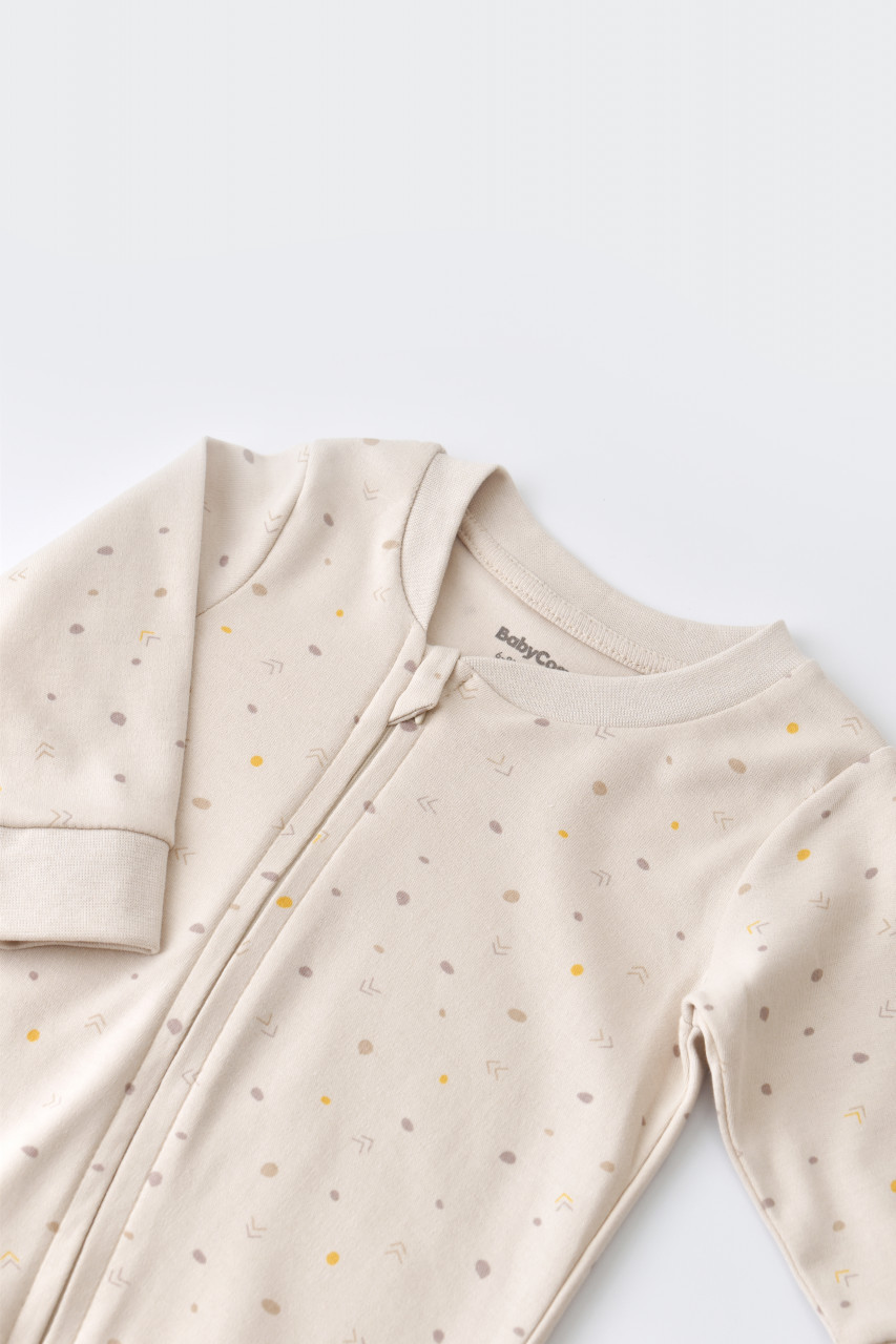 – Este realizat din bumbac organic 100% – material certificat GOTS, delicat cu pielea gingasa a a bebelusului. Printurile sunt cu vopseluri pe baza de apa si toate produsele sunt in concordanta cu standardele GOTS.