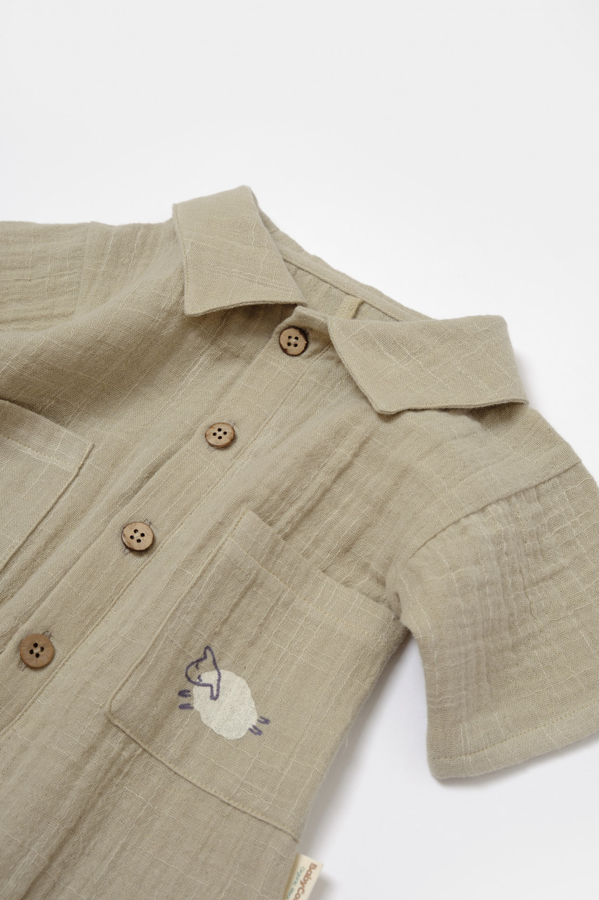 Salopeta cu maneca scurta si panataloni lungi perfecta pentru vremea calda. Acest model este potrivit atat pentru fetite, cat si pentru baieti.