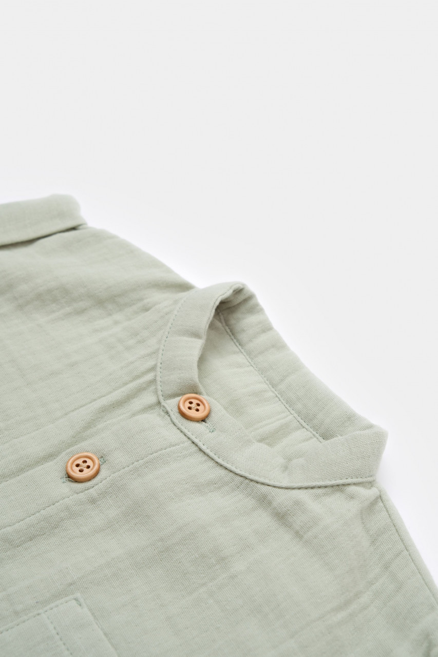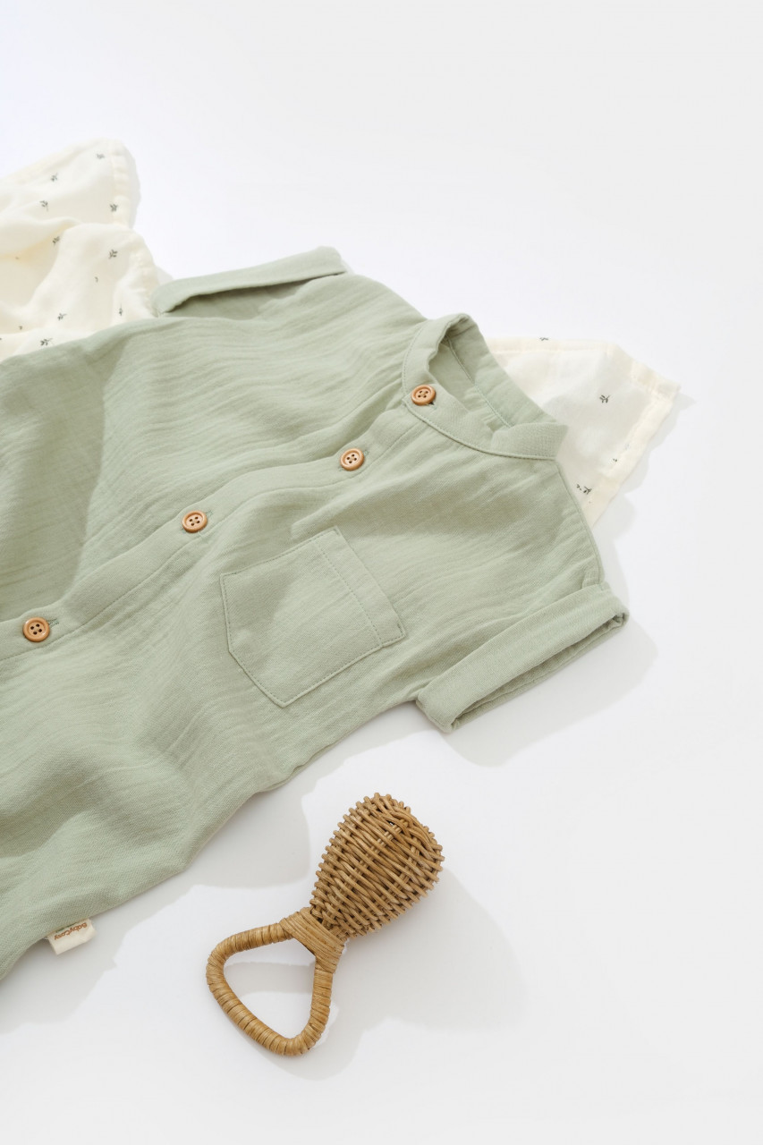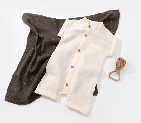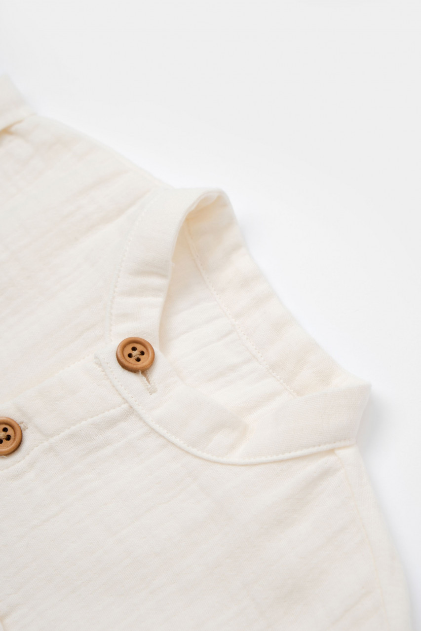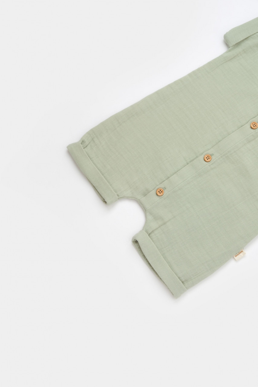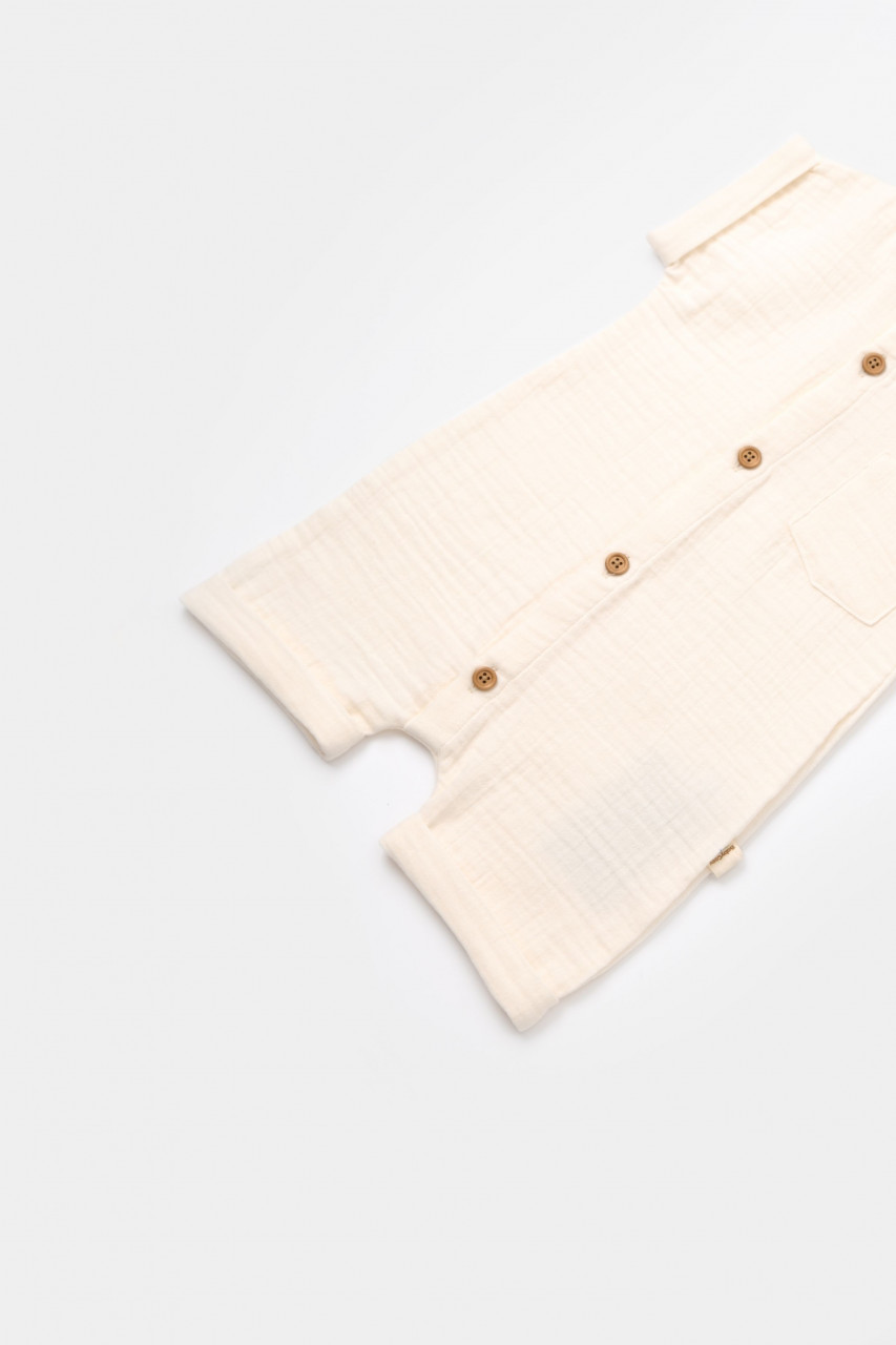 Salopeta de vara din muselina perfecta pentru zilele calduroase. Acest model este potrivit atat pentru fetite, cat si pentru baieti.