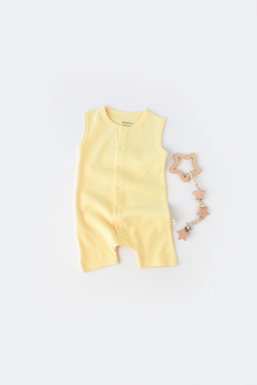 Salopeta fara maneci si panataloni scurti perfecta pentru zilele calde de vara. Acest model este potrivit atat pentru fetite, cat si pentru baieti.