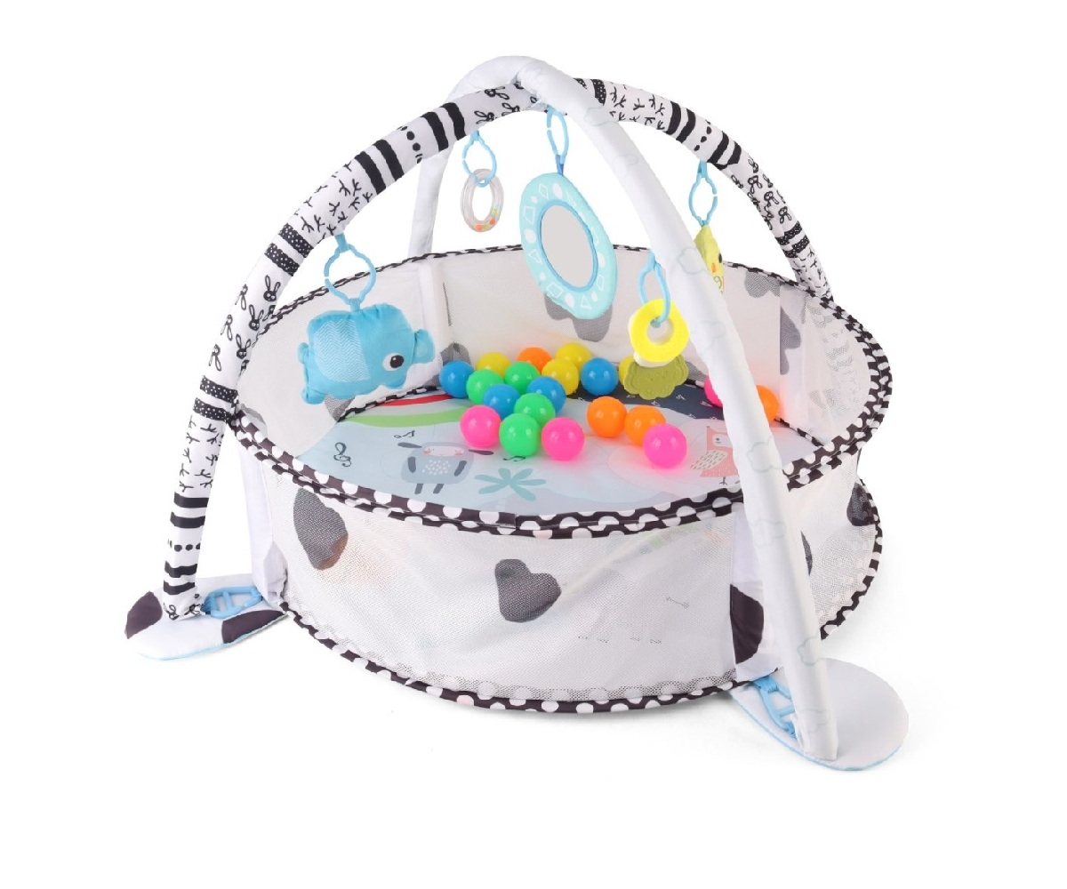 TinyMini Saltea educationala 2in1 Piscina cu Mingi TinyMini este o saltea educationala inovatoare 2in1 cu functia de tarc sigur si piscina cu mingi colorate. A fost proiectata pentru dezvoltarea senzoriala a bebelusului inca din primele zile de viata. Se remarca printr-o paleta de culori contrastanta (model alb-negru) care stimuleaza vederea nou-nascutilor si prin accesorii pastelate, discrete. 2 functii de utilizare intr-o singura saltea: Saltea educationala cu arcade Versiunea extinsa – ideala pentru primele incercari de a sta, de a se rostogoli si de a observa imprejurimile. Arcadele cu jucarii suspendate stimuleaza simturile si dezvolta coordonarea ochi-mana. Saltea – tarc/piscina cu mingi Peretii ridicati din plasa aerisita transforma salteaua intr-o mini-piscina sigura umpluta cu 20 de mingi colorate (incluse in set). Copilul se poate juca inconjurat de jucarii si pereti moi care ofera siguranta si confort. In set: 2 arcade contrastante cu posibilitate de demontare 4 jucarii moi si zornaitoare: Elefant de plus, Ratusca galbena, Zornaitoare transparenta cu bilute, Jucarie de mestecat si 1 inel senzorial Oglinda sigura 20 de mingi colorate (mix de culori) 5 tuburi de plastic pentru rigidizarea peretilor 6 manere albastre pentru fixarea jucariilor Jucariile pot fi mutate sau detasate cu usurinta – fiecare dintre ele are elemente sonore, tactile si vizuale care dezvolta simturile copilului. Caracteristici produs: 2in1: saltea educationala si piscina cu mingi Culori delicate cu elemente alb-negru pentru cei mai mici Laturi din plasa – aerisite, sigure si flexibile 20 de mingi colorate incluse in set Modele contrastante care stimuleaza vederea nou-nascutilor Oglinda pentru auto-cunoastere si invatarea recunoasterii fetei Spatiu moale si sigur pentru joaca Constructie stabila datorita intariturilor din plastic Usor de pliat si depozitat Simplu de curatat – este suficient sa stergeti cu o laveta umeda Date tehnice: Destinatie: de la 0+ luni Dimensiunile saltelei: 85 cm (diametru) cerc Inaltimea cu arcade: 55 cm Material: 100% poliester (hipoalergenic) Sfat privind ingrijirea: In cazul murdariei mai mari, salteaua trebuie spalata manual in apa calduta cu detergenti delicati. Siguranta: Jucariile suspendate pot fi demontate liber, ceea ce reduce riscul de deteriorare Salteaua este conceputa pentru a fi utilizata numai sub supravegherea adultilor Produsul nu este destinat somnului de noapte Verificarea regulata a starii arcadelor si a materialelor – nu utilizati in caz de deteriorare Salteaua este un instrument de dezvoltare educational, frumos conceput pentru sugari – combina joaca, confortul si siguranta. Jucariile suspendate colorate, usurinta de curatare si posibilitatea de a modifica configuratia o fac un accesoriu valoros pentru camera copilului. TinyMini – descopera lumea din prima zi! O idee de cadou perfecta! DIMENSIUNEA PRODUSULUI: Inaltime: 55 cm Latime: 85 cm Lungime: 85 cm DIMENSIUNEA AMBALAJULUI: Inaltime: 9 cm Latime: 56 cm Lungime: 40,5 cm Greutate produs: 0,662 kg Greutate bruta: 1,04 kg Instructiuni de asamblare Garantie: 1 an INFORMATII PRIVIND SIGURANTA PRODUSULUI Salteaua pentru sugari TinyMini Produsul este destinat copiilor de la nastere. AVERTISMENTE! Nu lasati niciodata copilul nesupravegheat. Acest produs nu inlocuieste un patut sau un pat. Daca copilul trebuie sa doarma, trebuie mutat intr-un patut sau pat adecvat pentru copii. Nu asezati niciodata produsul si copilul in el pe suprafete inaltate (de exemplu, masa). Acest lucru este periculos! Inainte de a aseza salteaua pe podea – curatati zona care va fi la indemana copilului. Indepartati toate obiectele ascutite, mici si alte produse care pot constitui un pericol pentru copil. In timpul jocului, copilul trebuie sa se afle sub supravegherea unei persoane adulte. Nu mutati produsul cu copilul inauntru. Arcul cu jucarii nu este destinat pentru transportul produsului. Produsul trebuie asezat departe de orice sursa de caldura (de exemplu, calorifere, incalzitoare, foc deschis etc.). Inainte de fiecare utilizare, o persoana adulta trebuie sa verifice starea produsului. In cazul in care se constata deteriorari – utilizarea trebuie intrerupta. Salteaua este destinata exclusiv utilizarii in casa – folositi-o pe podea .