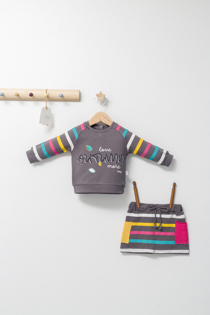 Setul format din bluzita si fustita pentru fetite Colorful autum reprezinta o combinație de design spectaculos și confort absolut.
