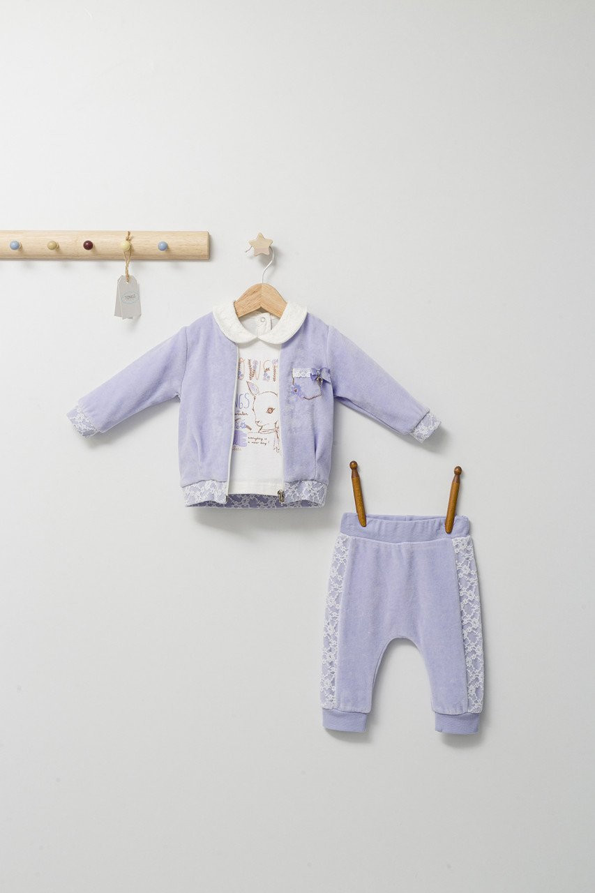 Set compus din 3 piese: pantaloni, bluzita si hainuta cu gluga eleganta pentru bebelusi din colectia Gazelle reprezinta o combinație de design spectaculos și confort absolut.