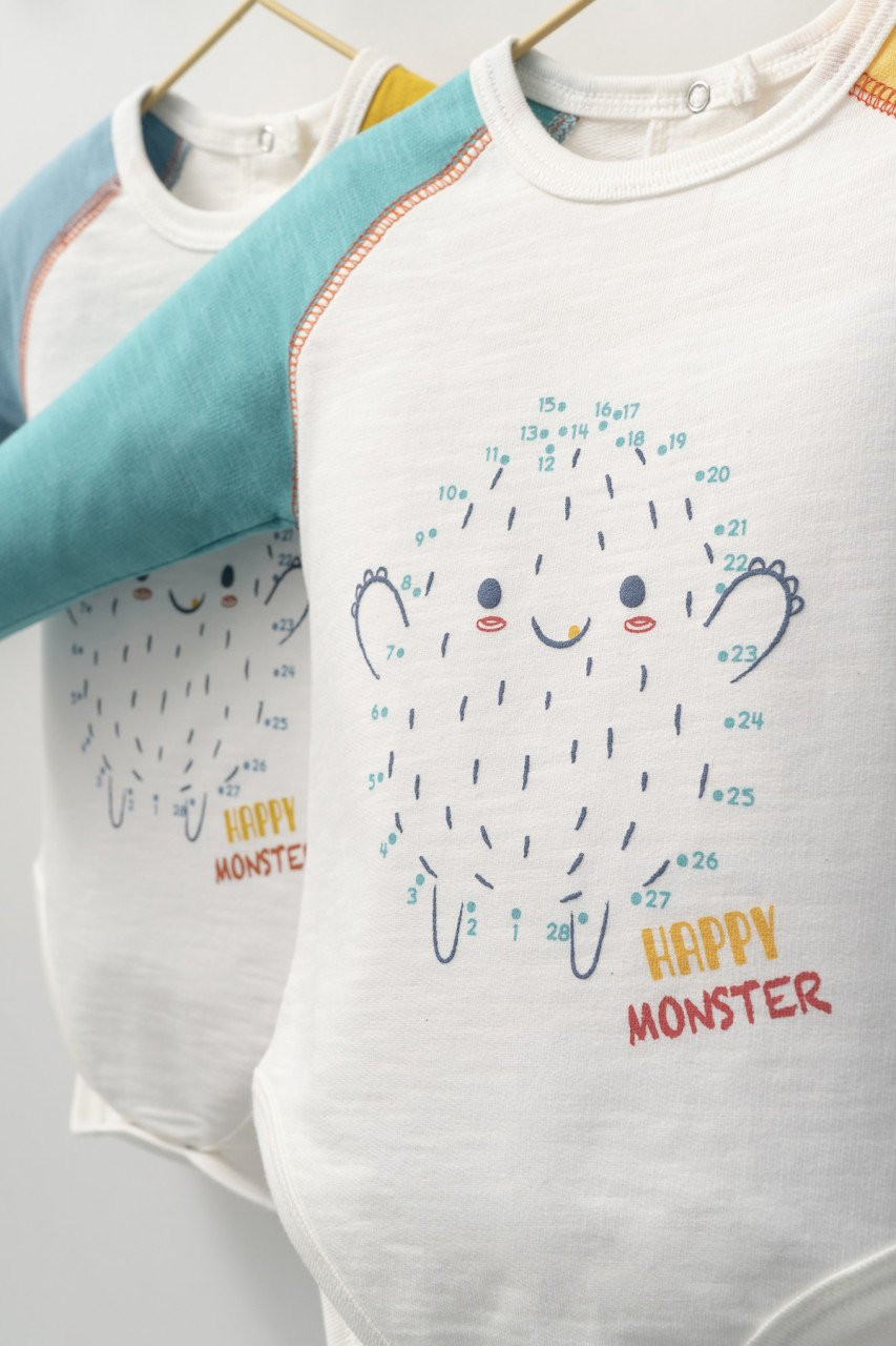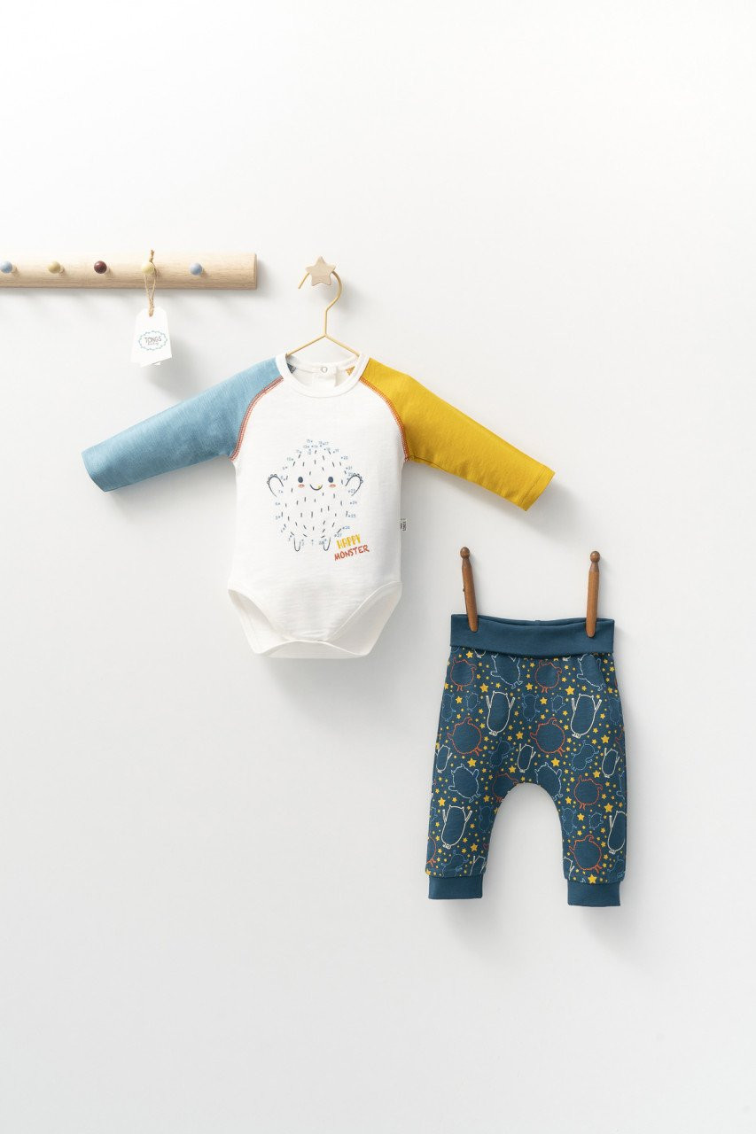 Setul compus din pantalonasi si body cu maneca lunga pentru bebelusi din colectia de toamna Monster reprezinta o combinație de design spectaculos și confort absolut.