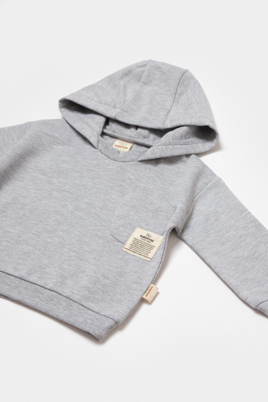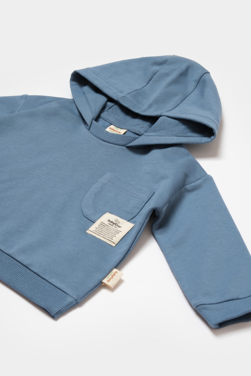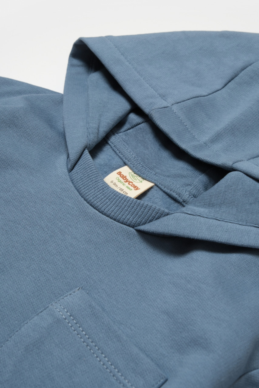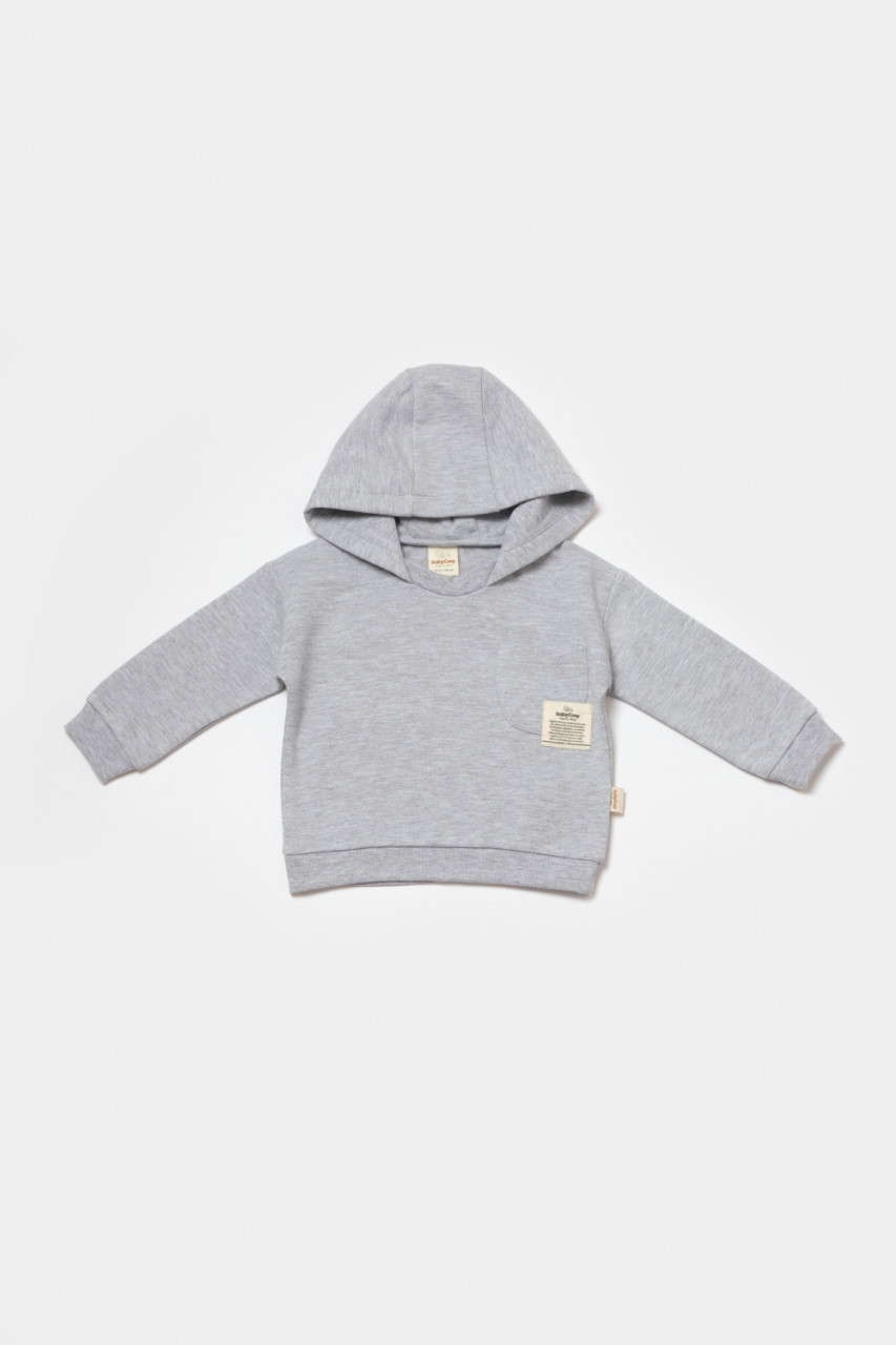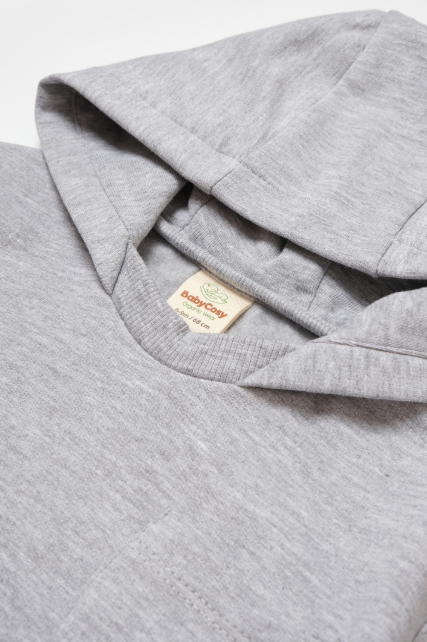 2. Hanoracul cu maneci lungi si gluga, din 100% bumbac organic,are un buzunar decotativ la piept.
