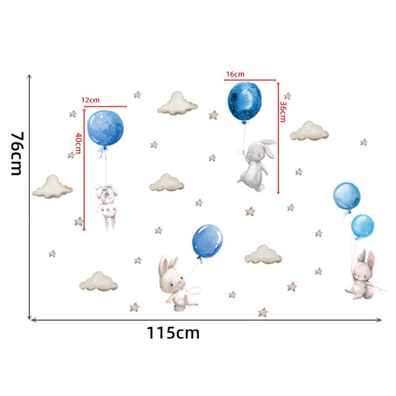 Sipo – Sticker Decorativ Pentru Copii, Autoadeziv, Iepurasi cu baloane, albastru, 70×49 cm