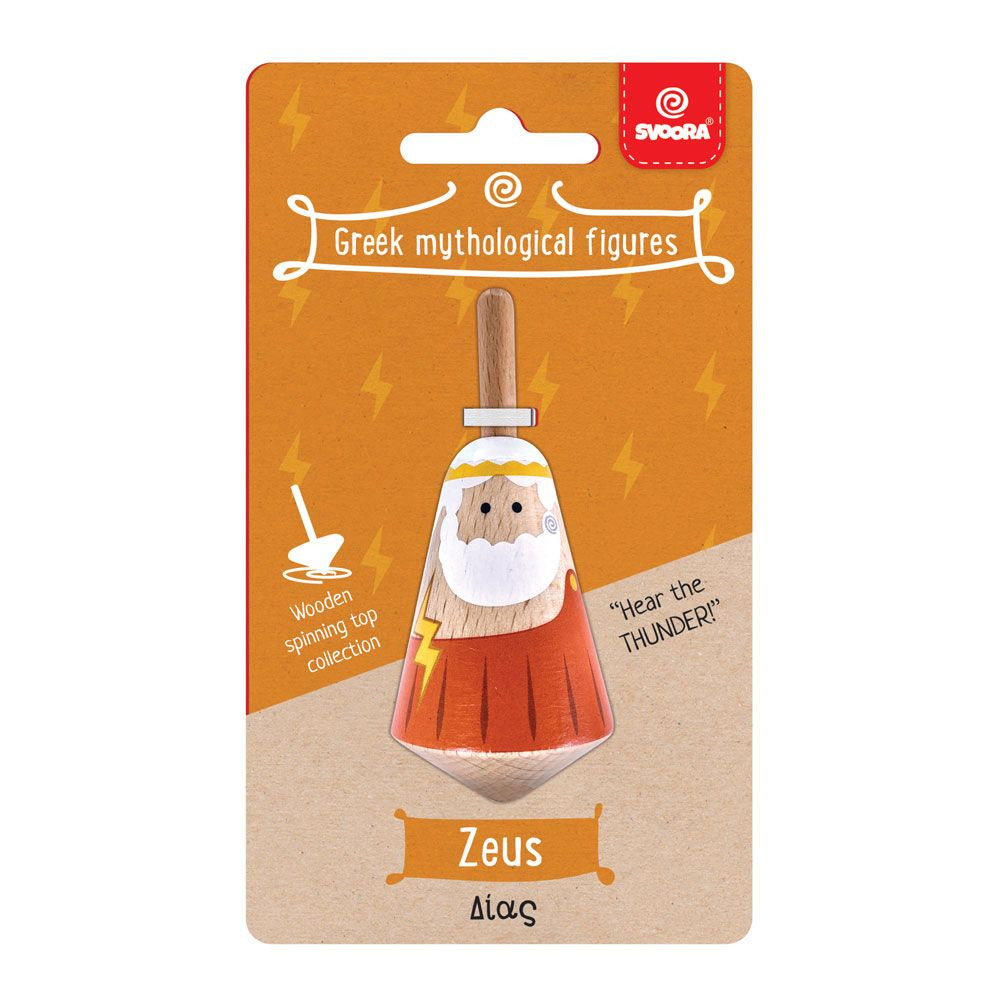 Titirez din lemn, figurina mitologica, Zeus Auzi tunetul? Zeus, tatăl tuturor zeilor olimpieni, este aici pentru a uimi! Fă cunoștință cu noua colecție de titirezi, inspirată de personaje mitologice. Învârte-l cât poți de tare ca lumea din jurul lui să zboare. Dimensiune titirez 4 x 8 x 4 cm Confecționat din lemn de fag certificat FSC® cu vopsele pe baza de apa, conform reglementărilor EN71 & ASTM.Vârsta recomandată: + 6 ani.Avertisment: Contraindicat copiilor sub 3 ani. A se utiliza sub stricta supraveghere a unei persoane adulte.Producător: Svoora, Grecia.