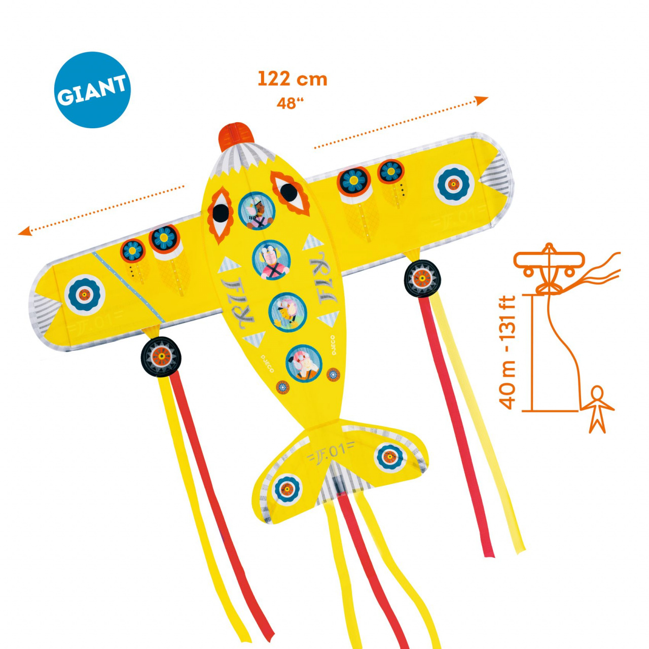 Zmeu Cel mai mare avion Maxi Plane este un zmeu uriaș în formă de avion. Arată grozav pe cer! Un zmeu pop-up care se asambează ușor din două bucăți, se atașează mânerul și este gata!Conținut: zmeu cu tije din poliester și fibră de sticlă, livrat cu mâner și fir (40 m), husă de depozitare. Dimensiuni: 122 x 88 cm, coada 250 cm. Vârsta recomandată: + 5 ani.Confecționat din materiale non-toxice, conform reglementărilor EN71 & ASTM. Certificare FSC®.AVERTISMENT: Contraindicat copiilor sub 3 ani. A se utiliza strict sub supravegherea unei persoane adulte. Conține fir lung. Producător: Djeco, Franța